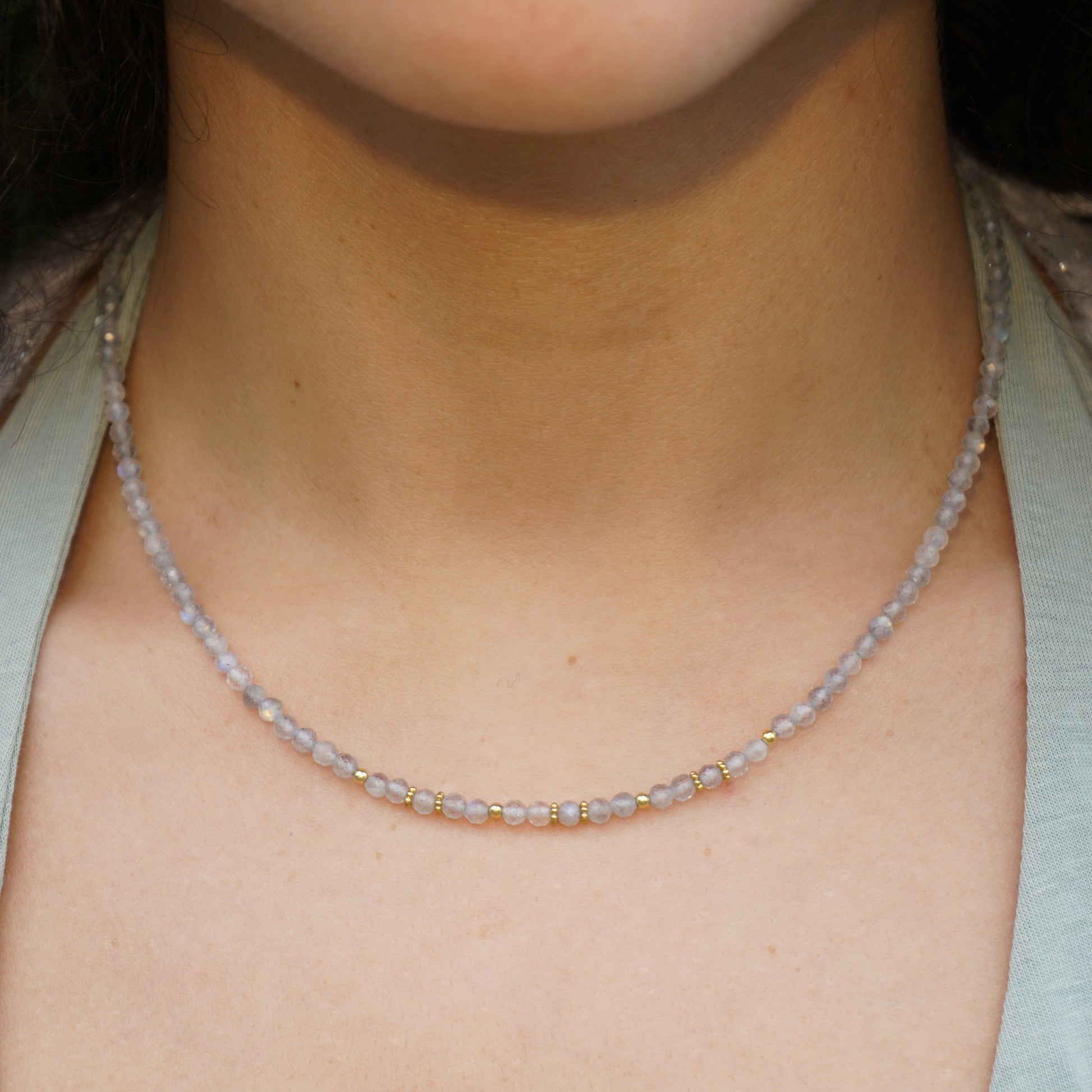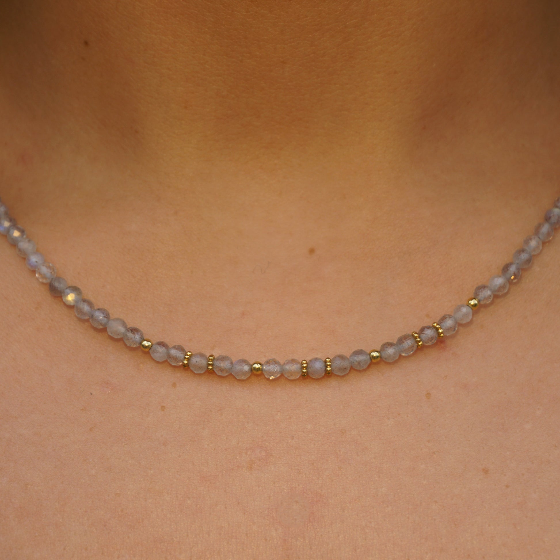Handgefertigte Edelsteinkette Labradorit 3mm facettiert mit 925 Sterlingsilber 18k vergoldet, Verschluss Karabiner 925 Sterlingsilber 18k vergoldet.