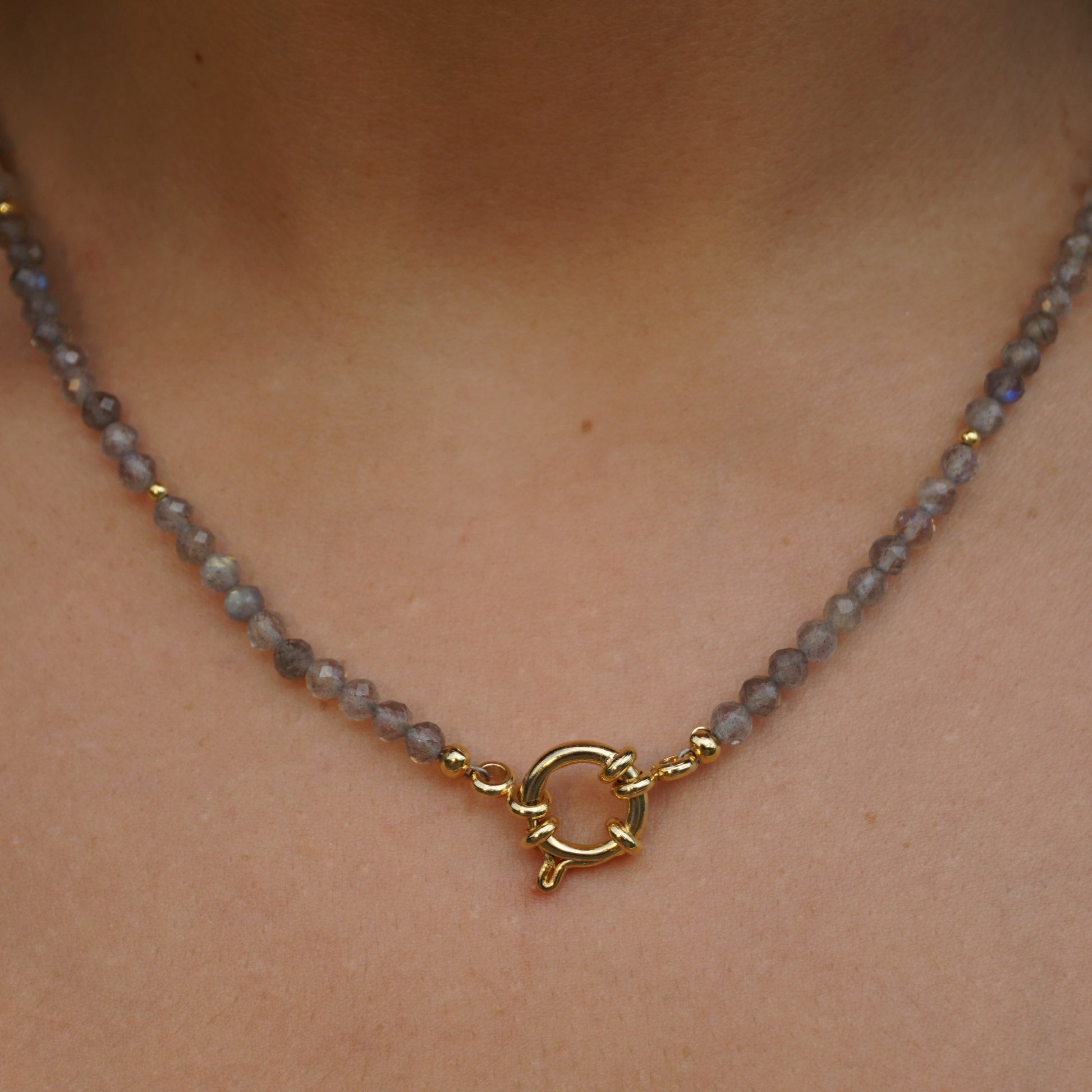 Handgefertigte Edelsteinkette Labradorit 4mm facettiert 925 Sterlingsilber 18k vergoldet, Verschluss Karabiner 925 Sterlingsilber 18k vergoldet.