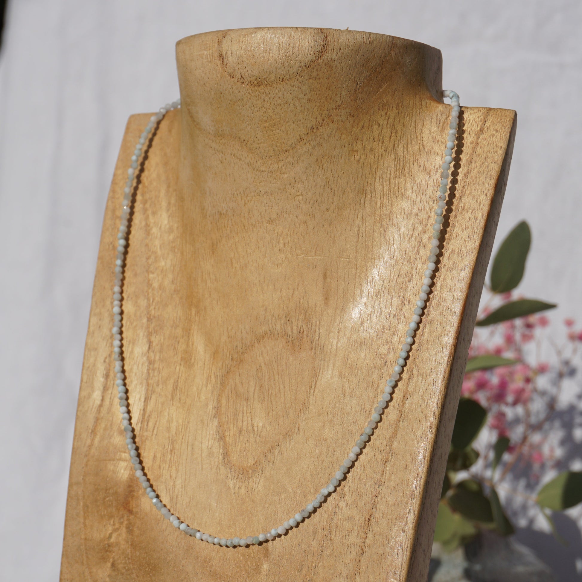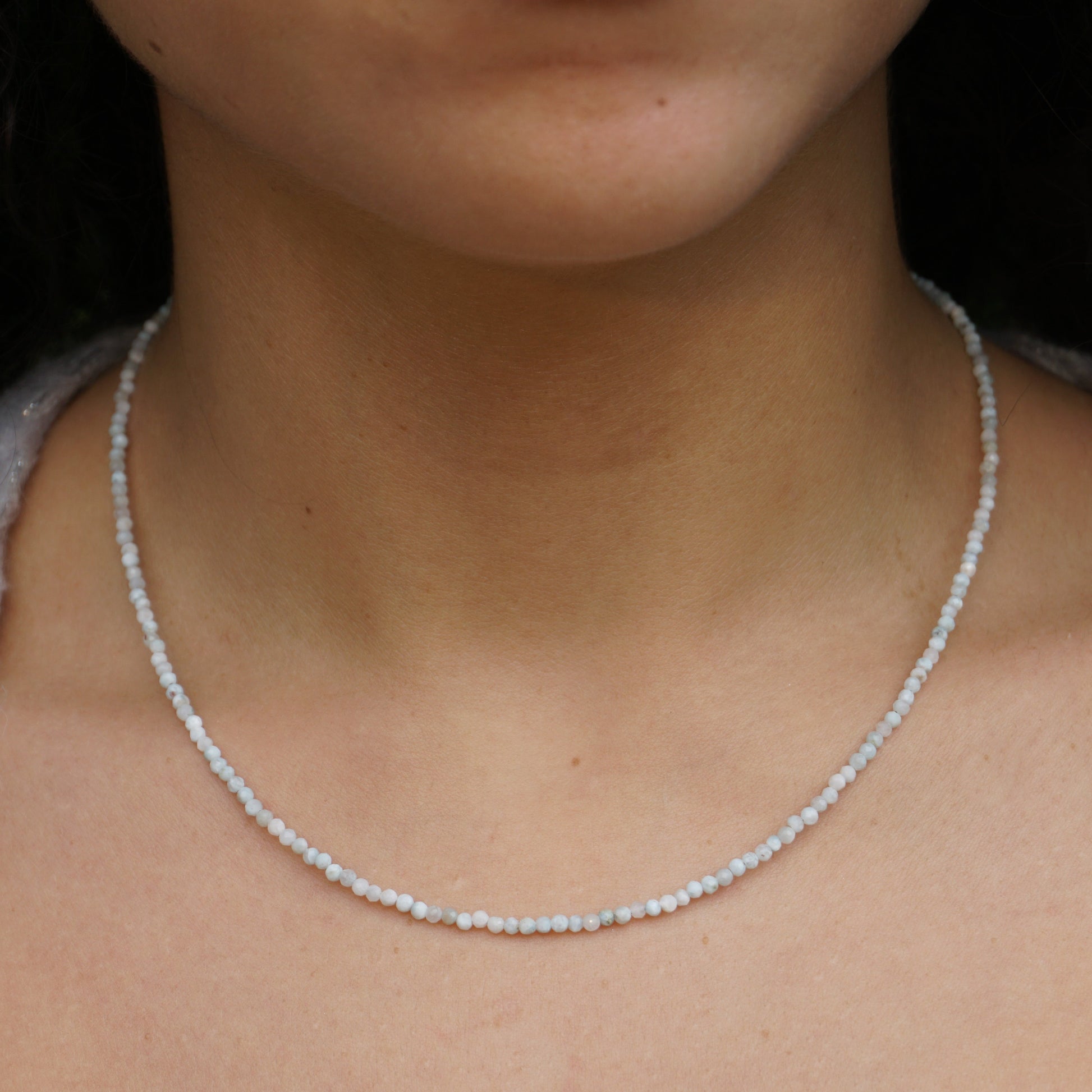 Handgefertigte Edelsteinkette Larimar 2mm facettiert, Verschluss Karabiner 925 Sterlingsilber.