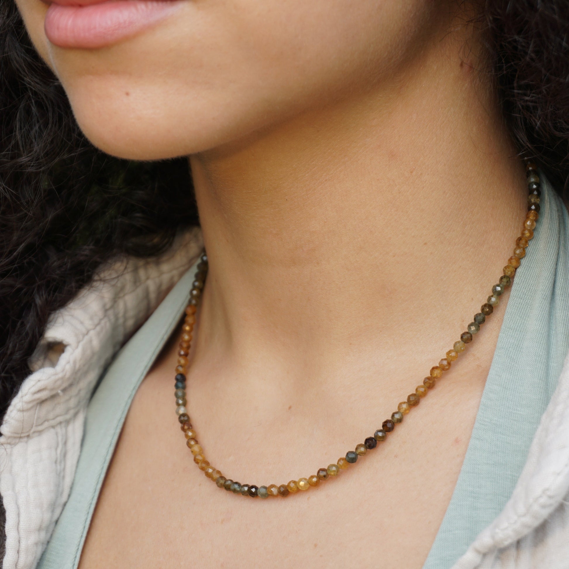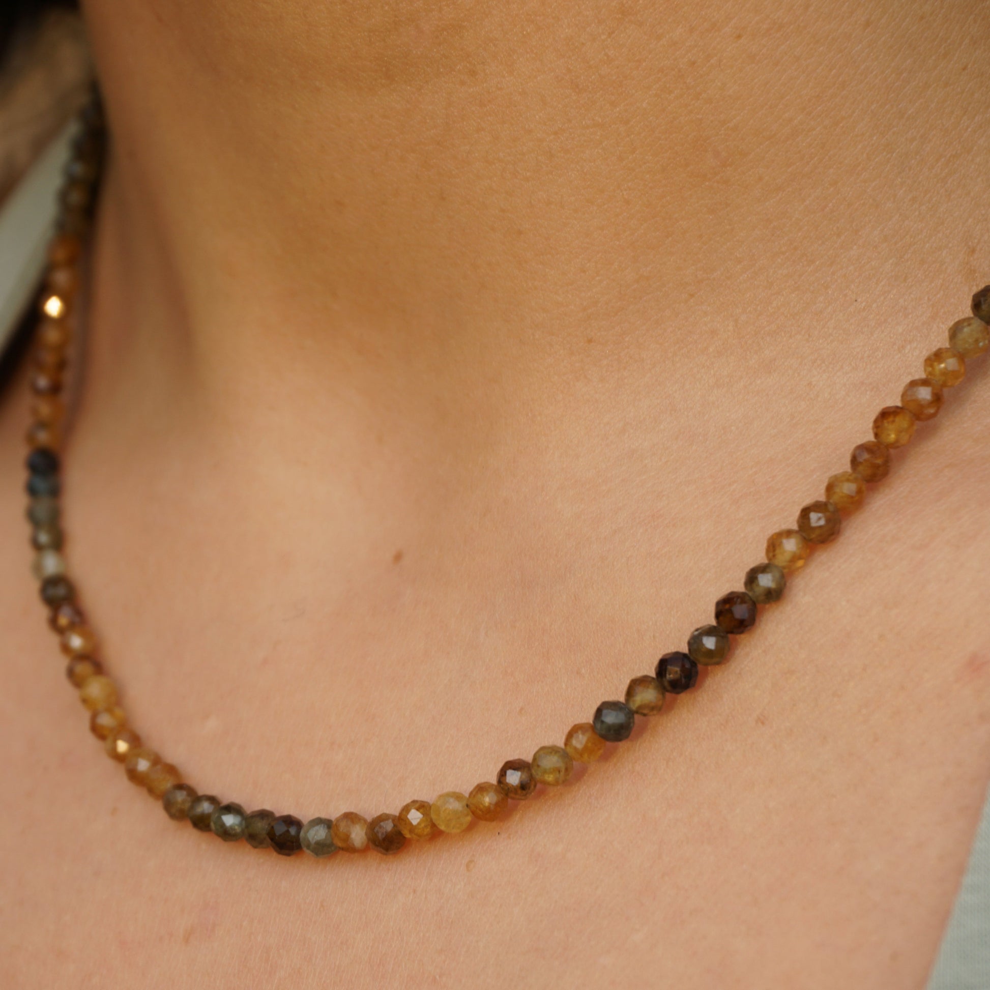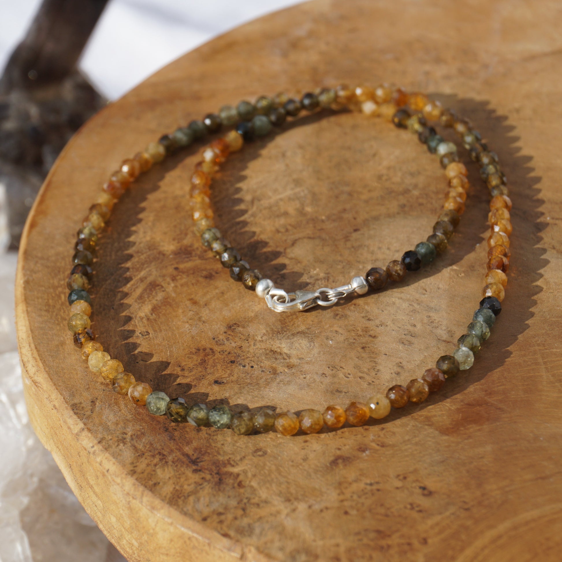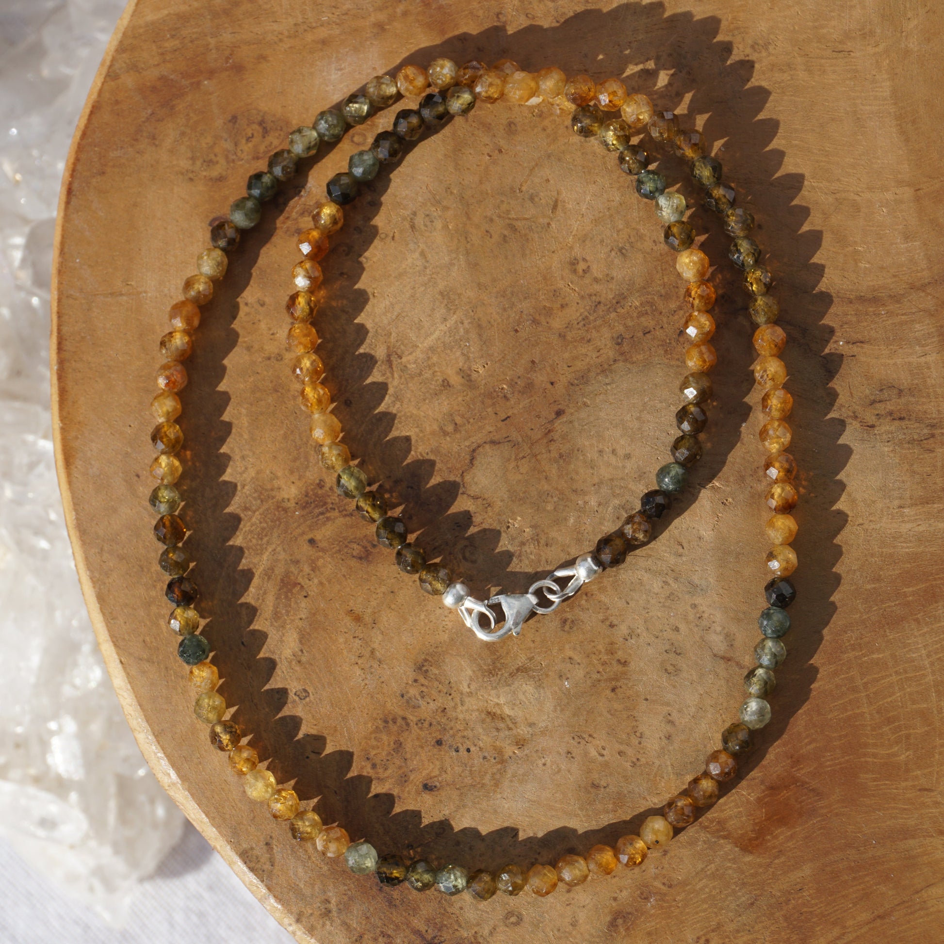Handgefertigte Edelsteinkette Turmalin 4mm facettiert, Verschluss Karabiner 925 Sterlingsilber.
