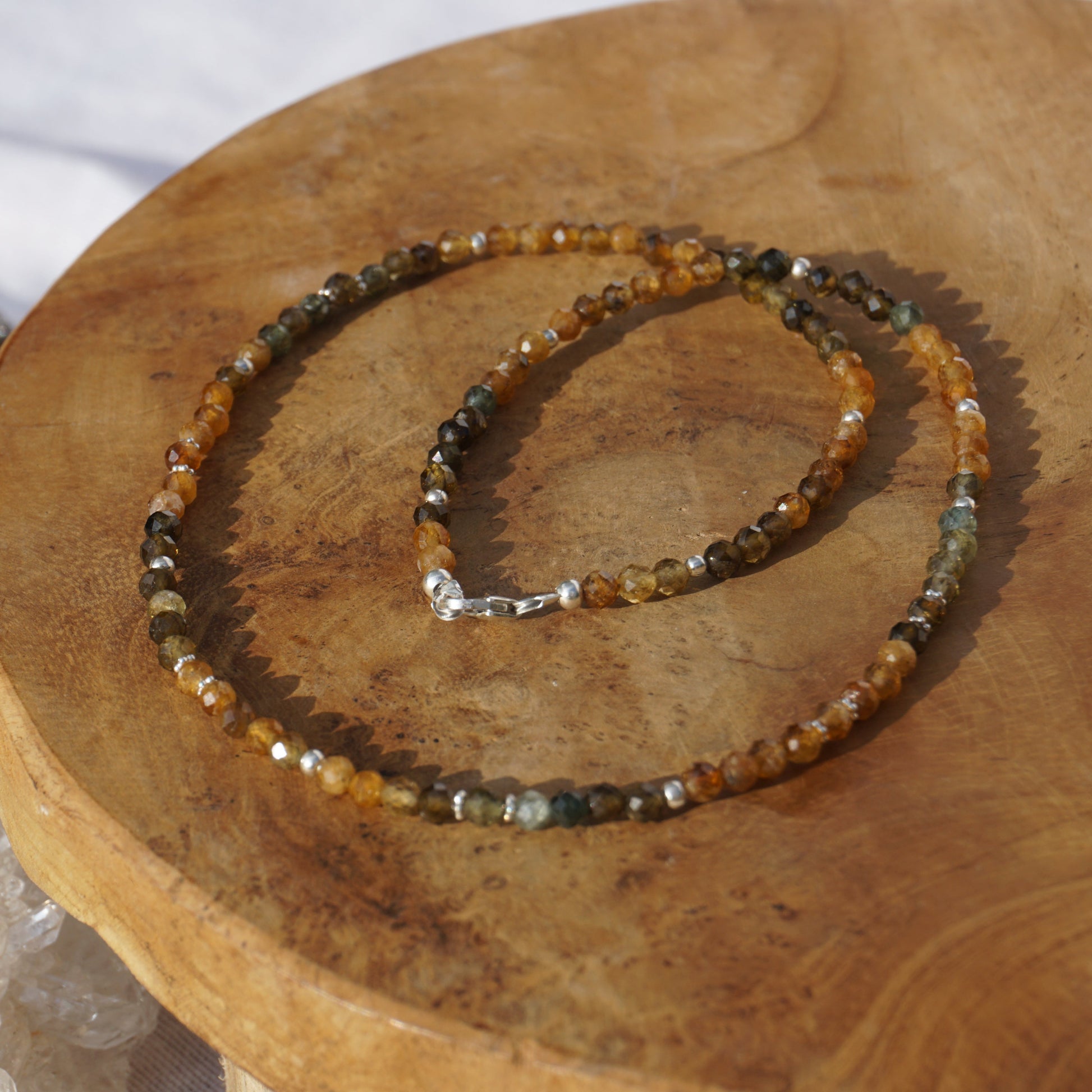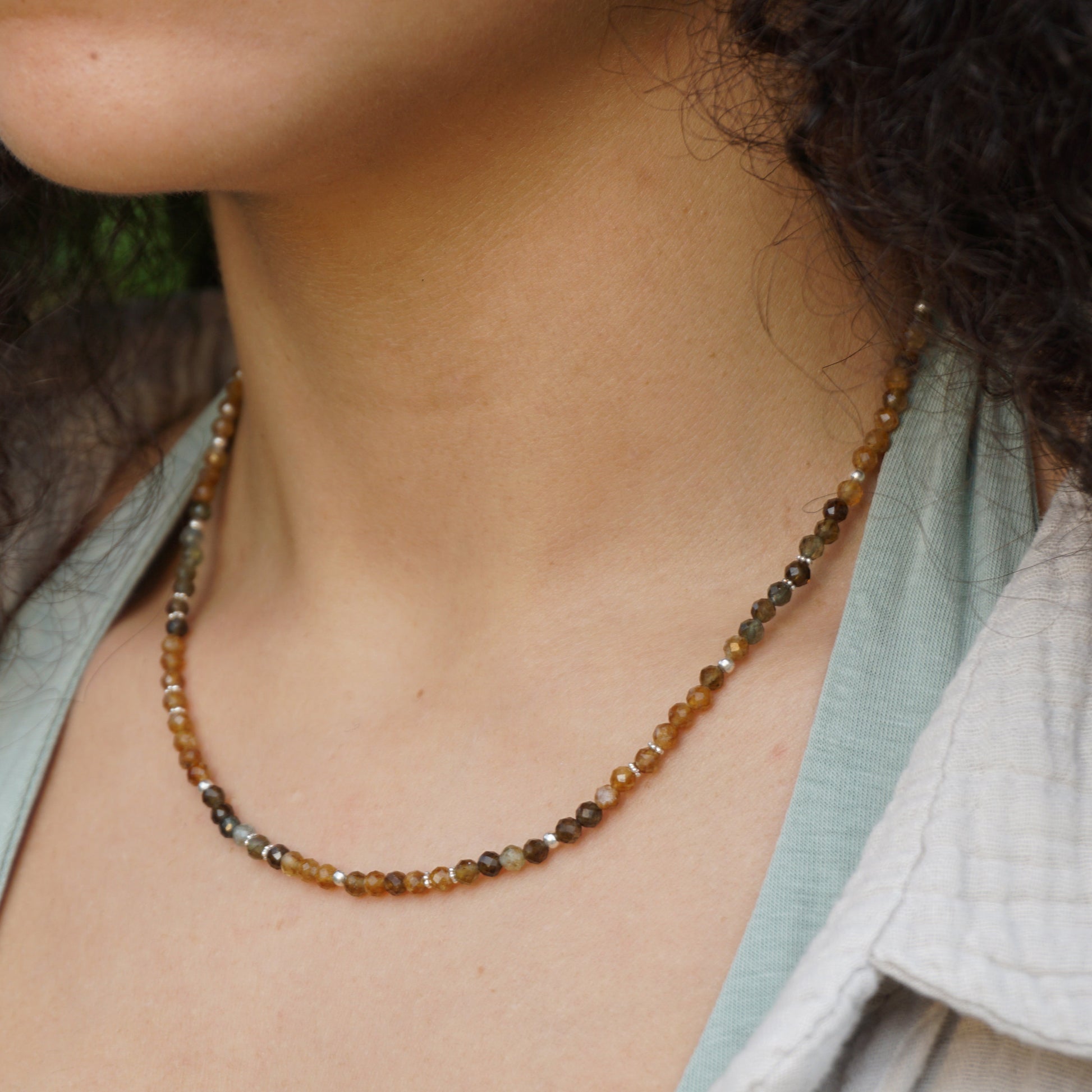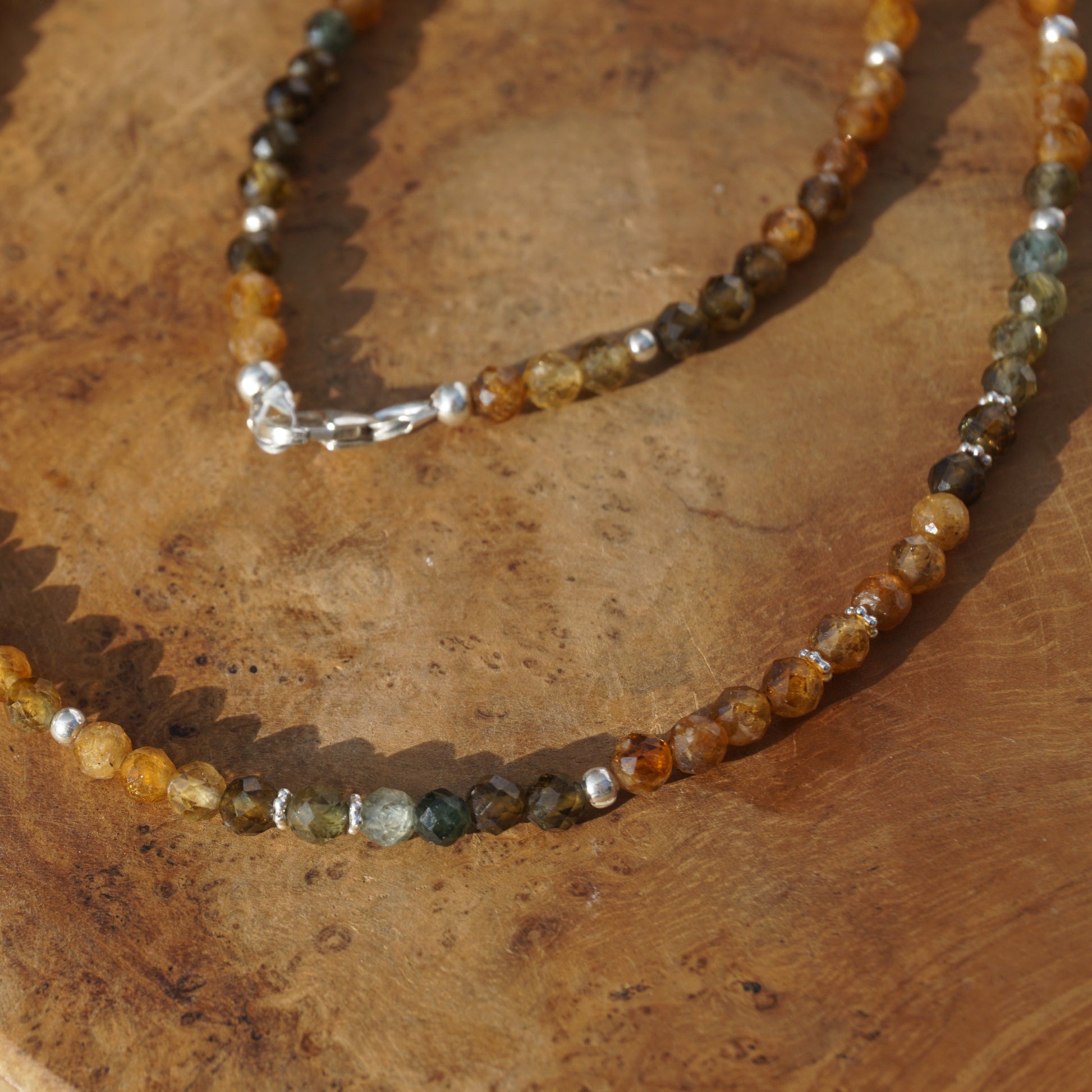 Handgefertigte Edelsteinkette Turmalin 4mm facettiert mit Sterlingsilberperlen, Verschluss Karabiner 925 Sterlingsilber.