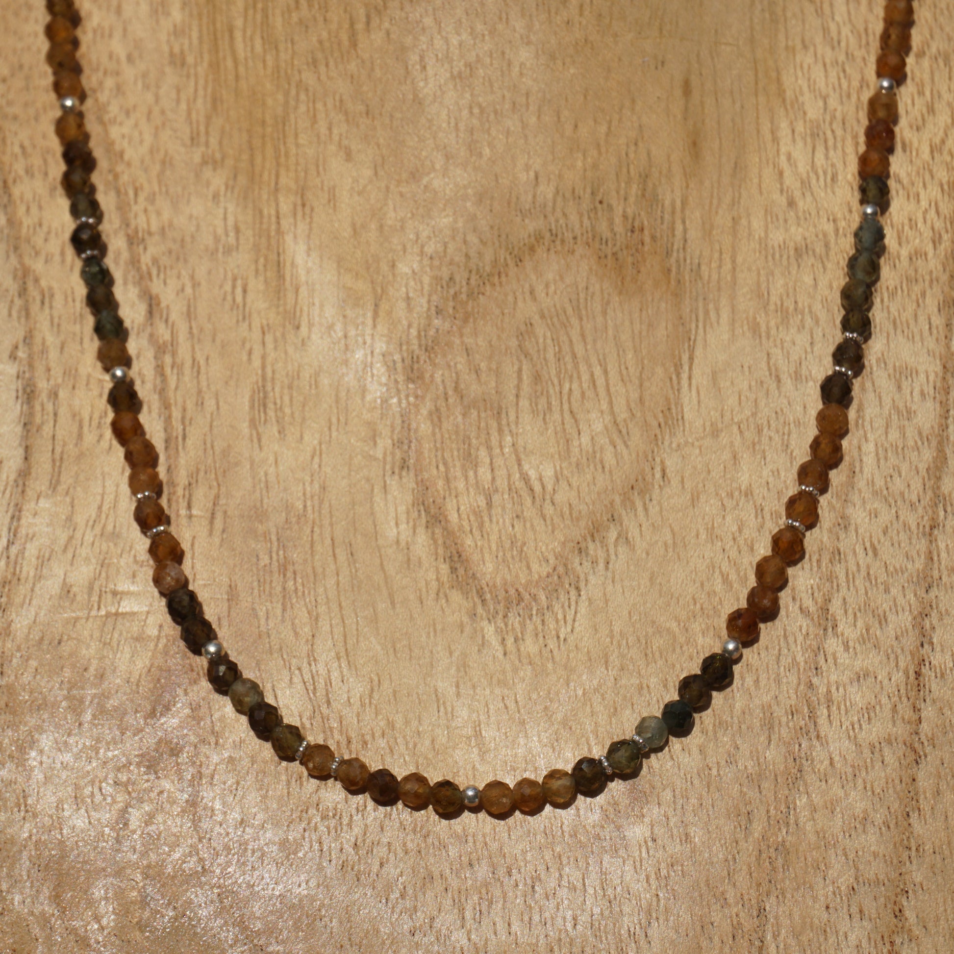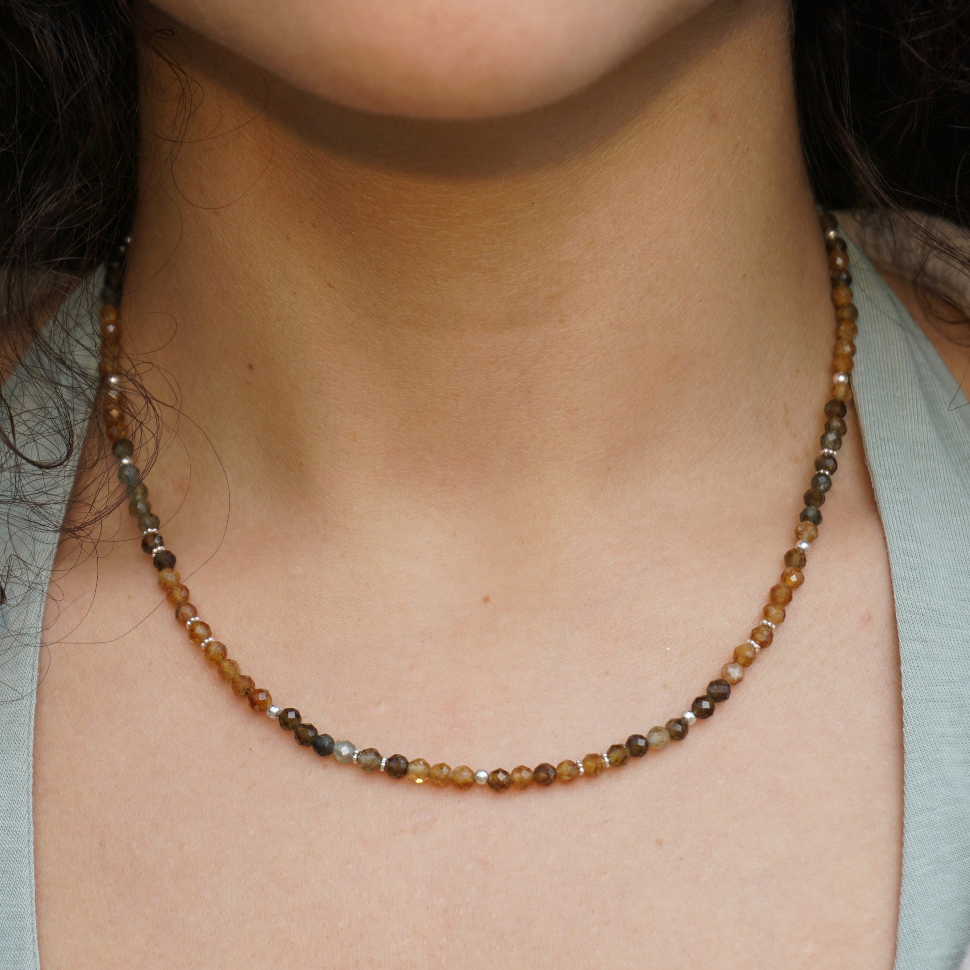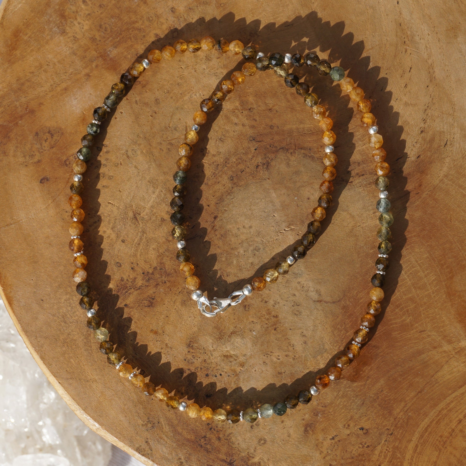 Handgefertigte Edelsteinkette Turmalin 4mm facettiert mit Sterlingsilberperlen, Verschluss Karabiner 925 Sterlingsilber.