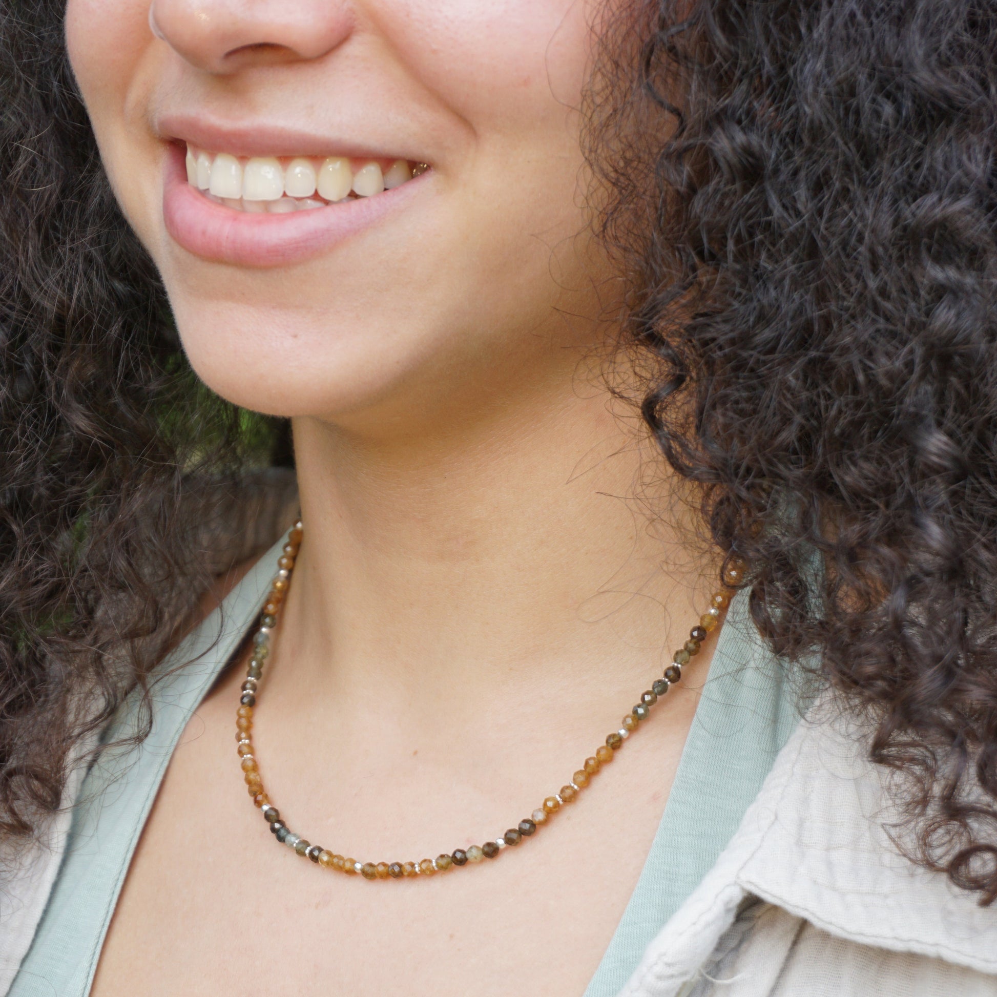 Dieses elegante Design überzeugt mit filigranen Silberperlen, die die warmen Farbtöne des Turmalins säumen. Sie eignet sich auch super zum Layering und Kombinieren mit weiteren Ketten.