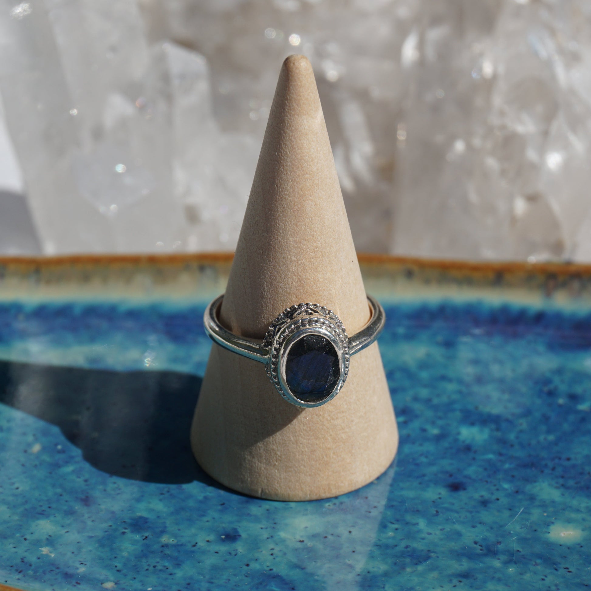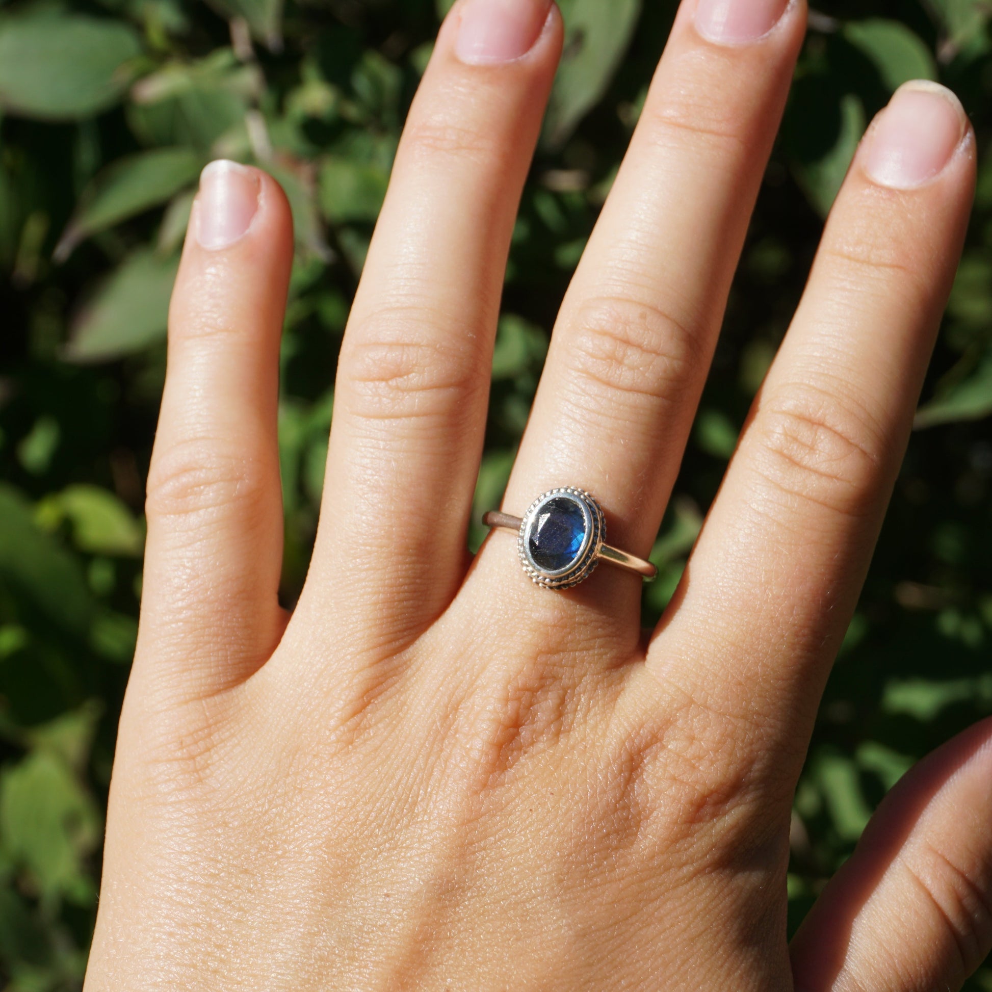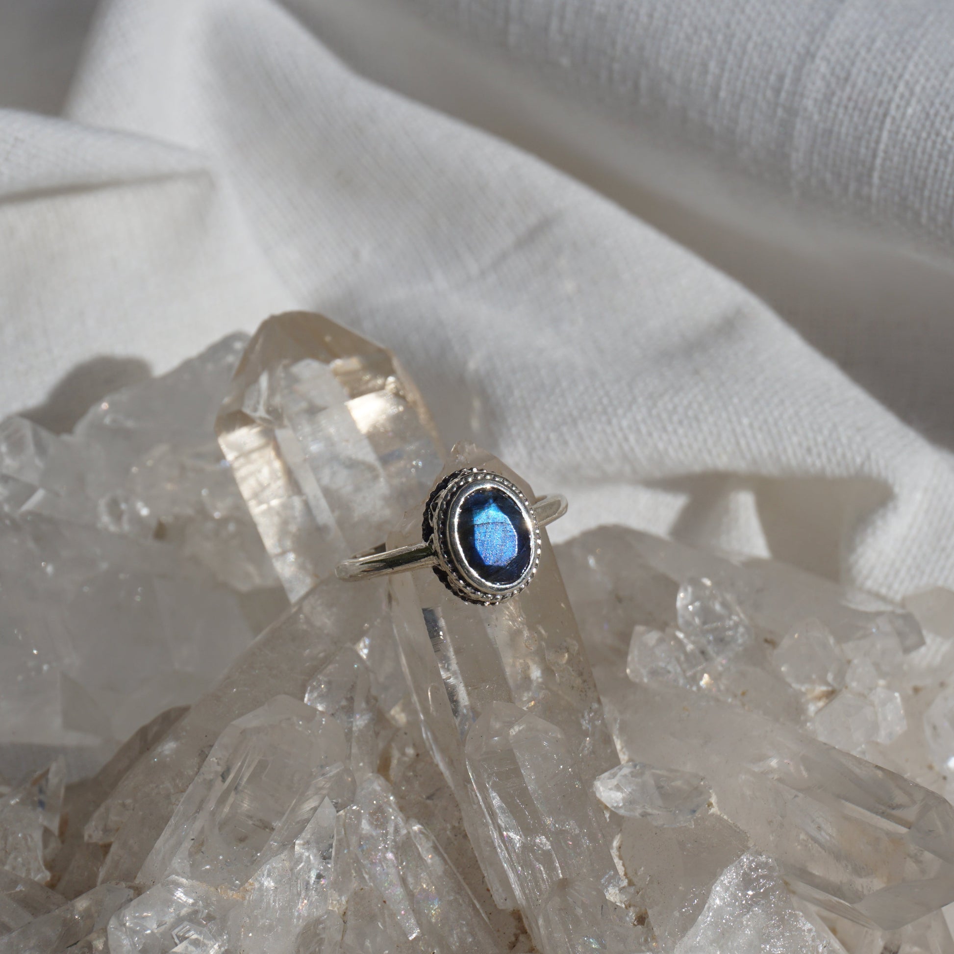 Handgefertigter Ring aus 925 Sterlingsilber mit Labradorit.