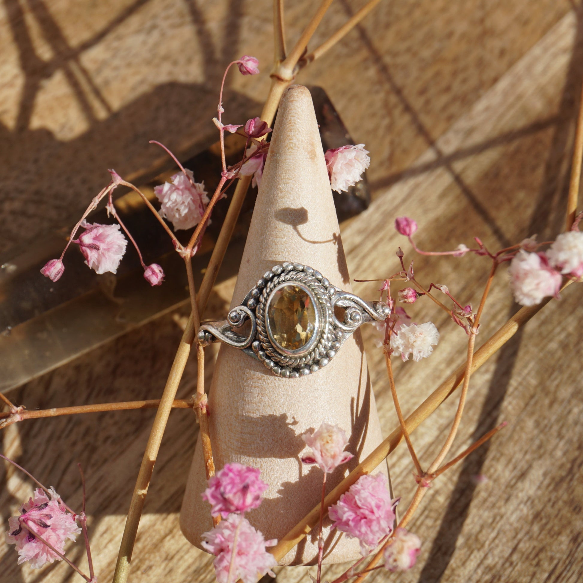 Handgefertigter Ring aus 925 Sterlingsilber mit Citrin / Topas.