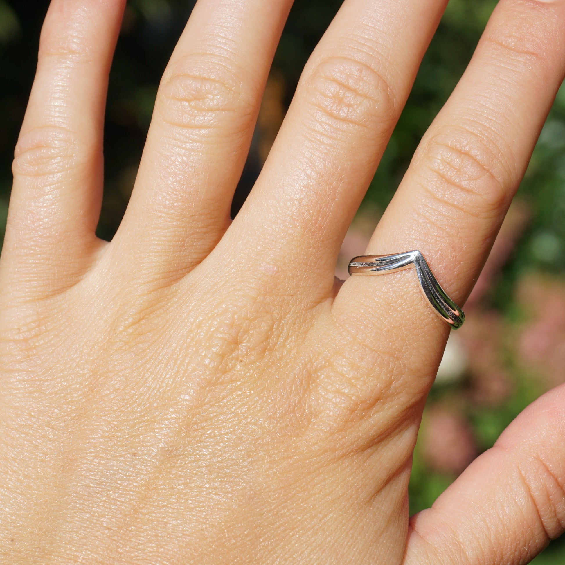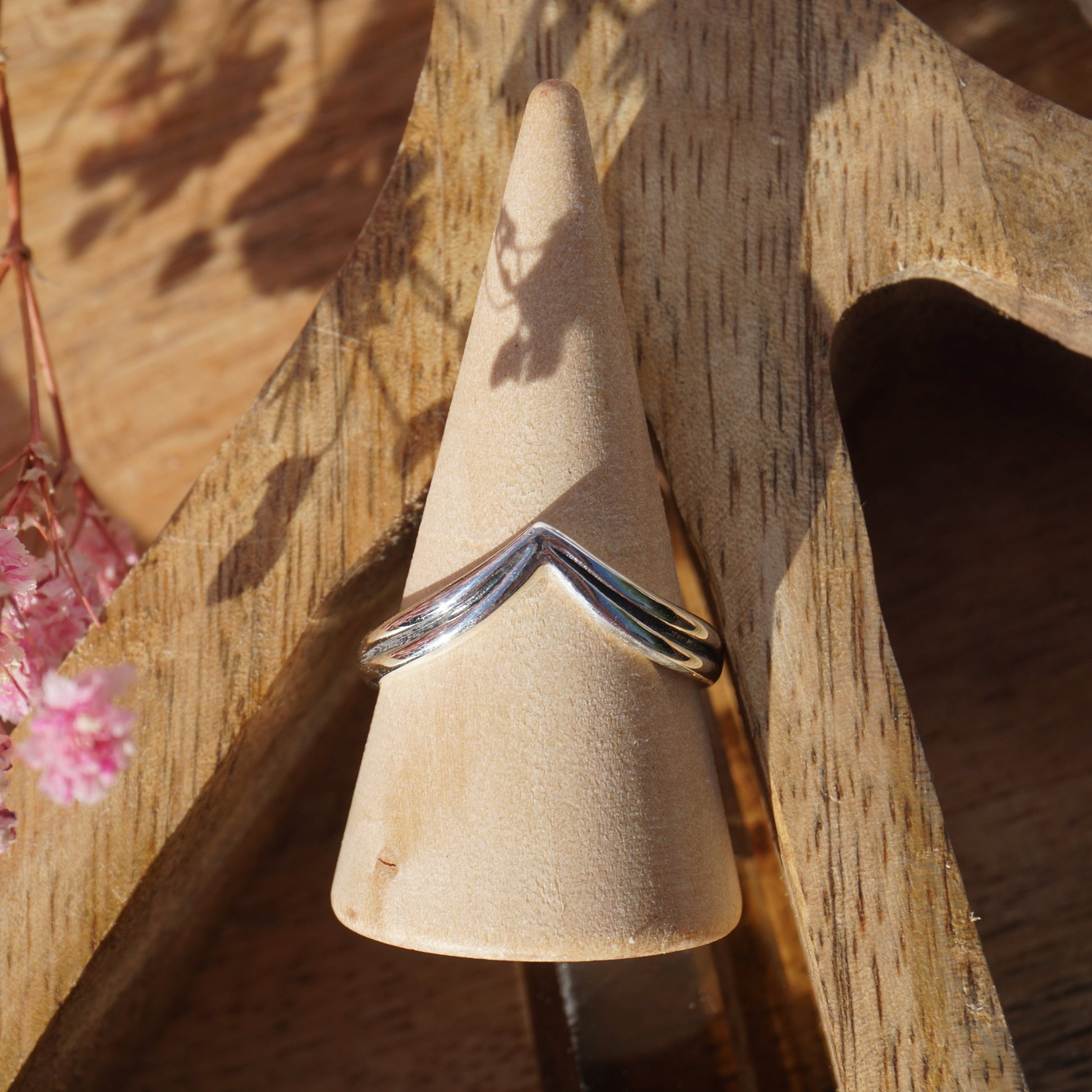 Der Ring Grace idt eine sanft geschwungene Spitze mit oxidierter Rille in der Mitte. Ein zeitloses Schmuckstück, welches du auch super mit anderen Ringen kombinieren kannst.