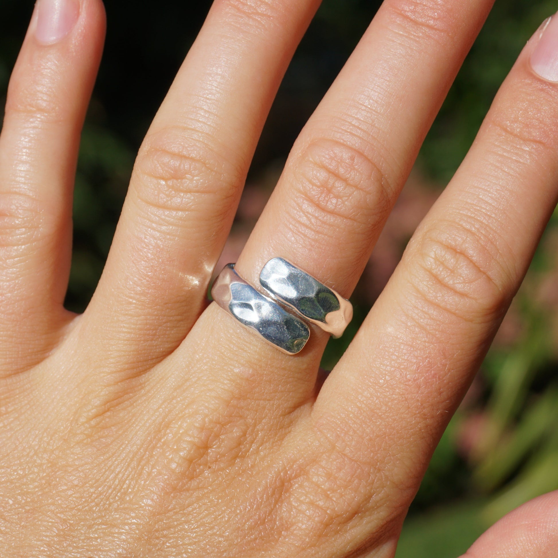 Der Ring Hammerschlag besteht aus einem massiven Stück Sterlingssilber, welches gehämmert wurde und daher eine schöne Struktur aufweist. Da der Ring offen gearbeitet wurde, ist er Größenverstellbar. Ein zeitloses Schmuckstück für jeden Tag.