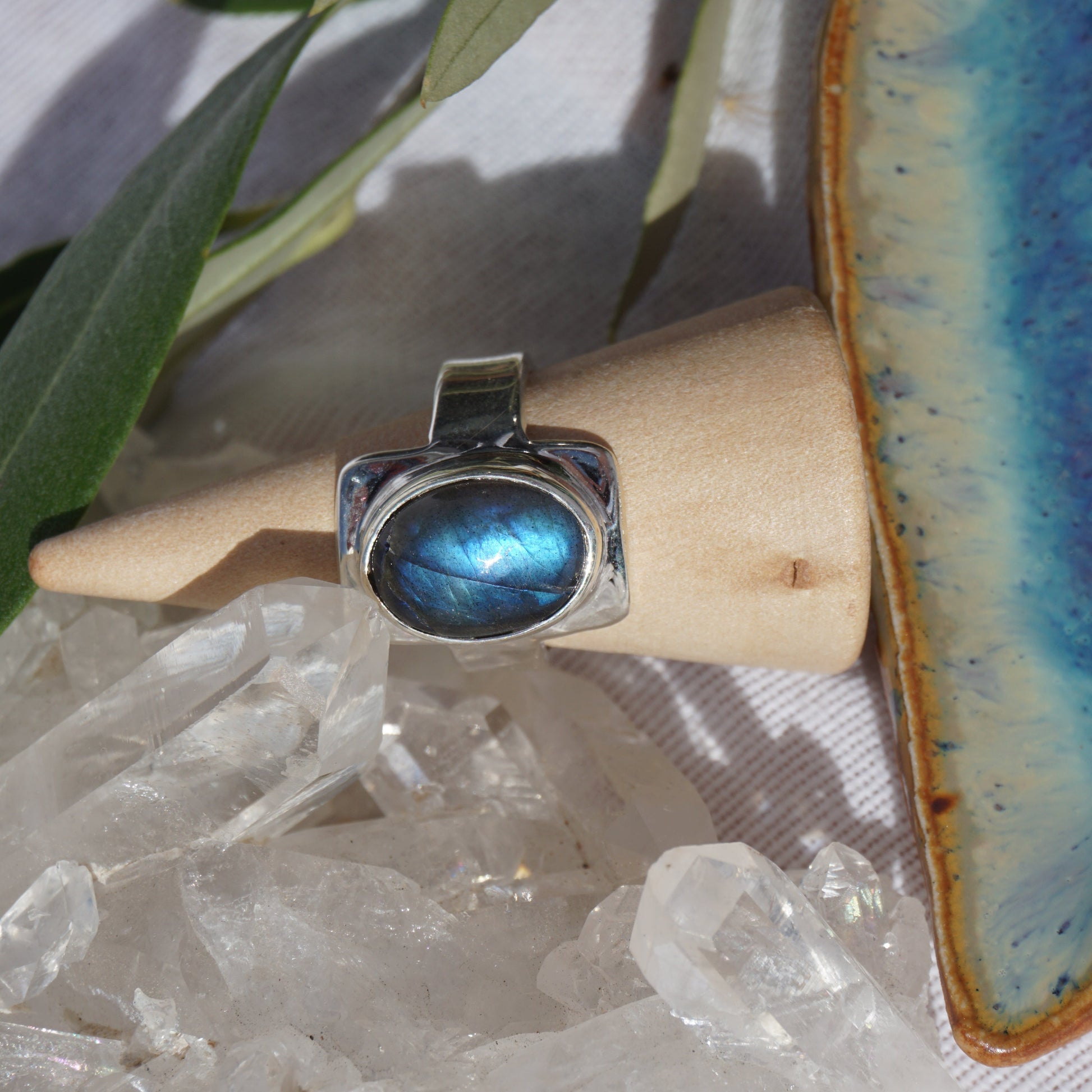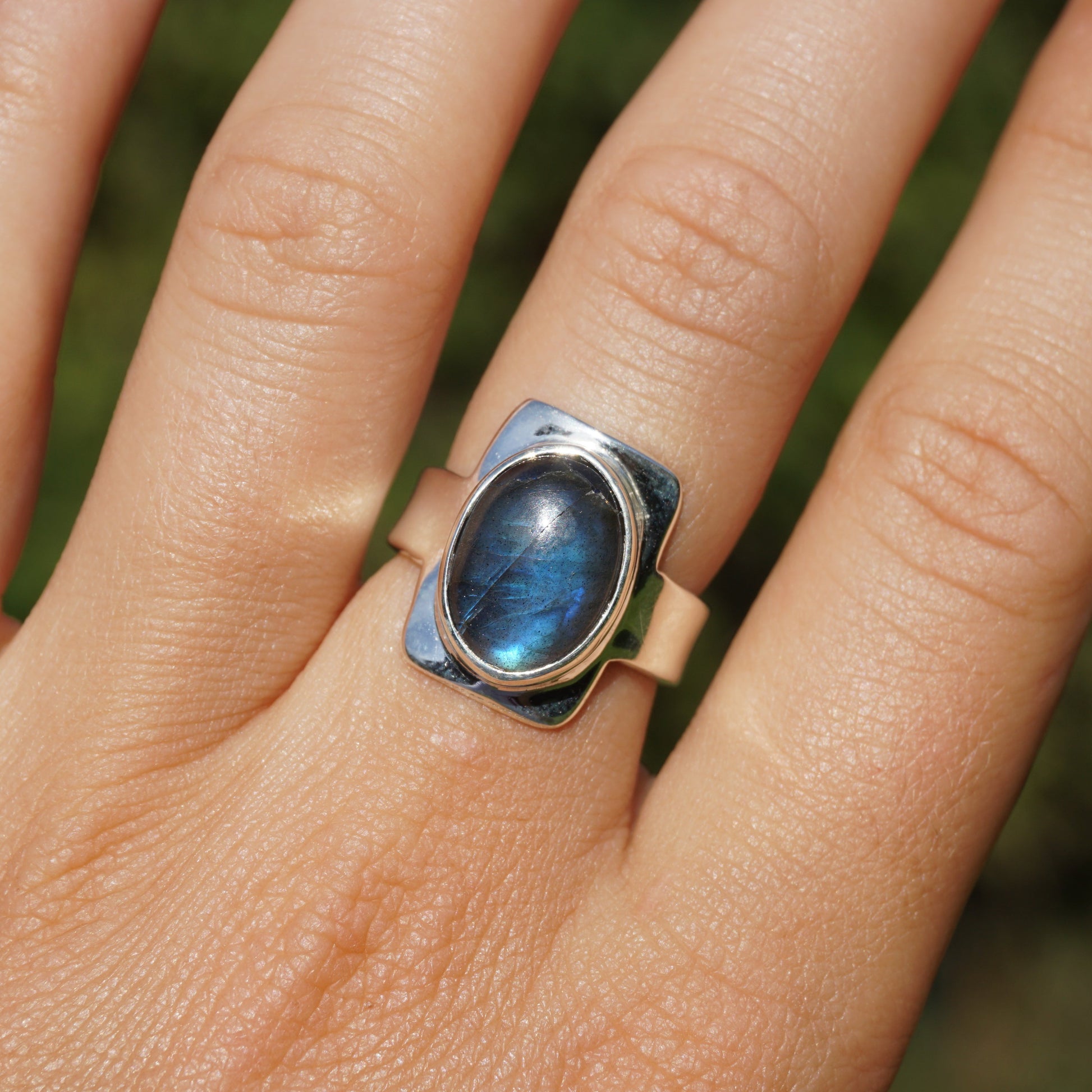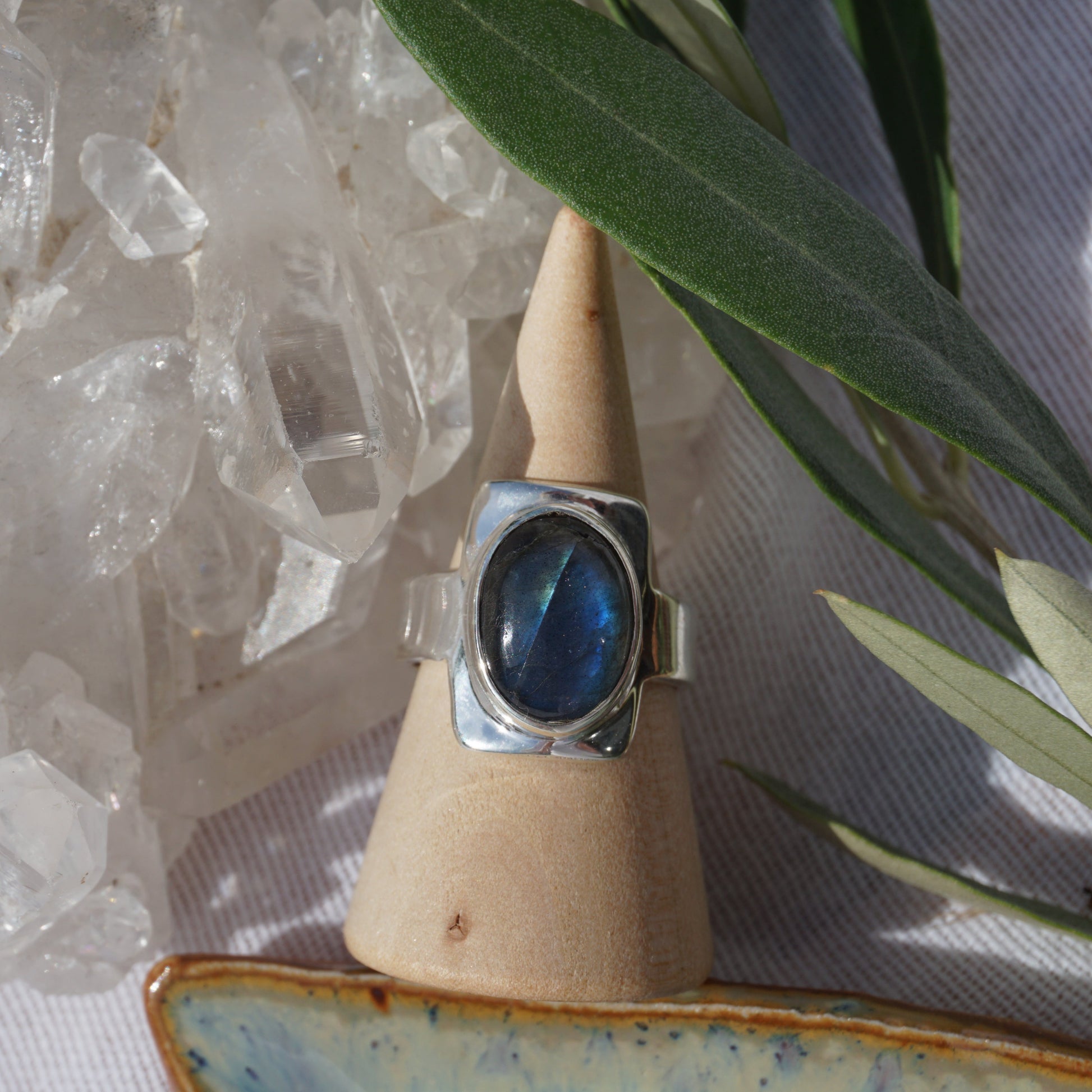 Handgefertigter Ring aus 925 Sterlingsilber mit Labradorit.