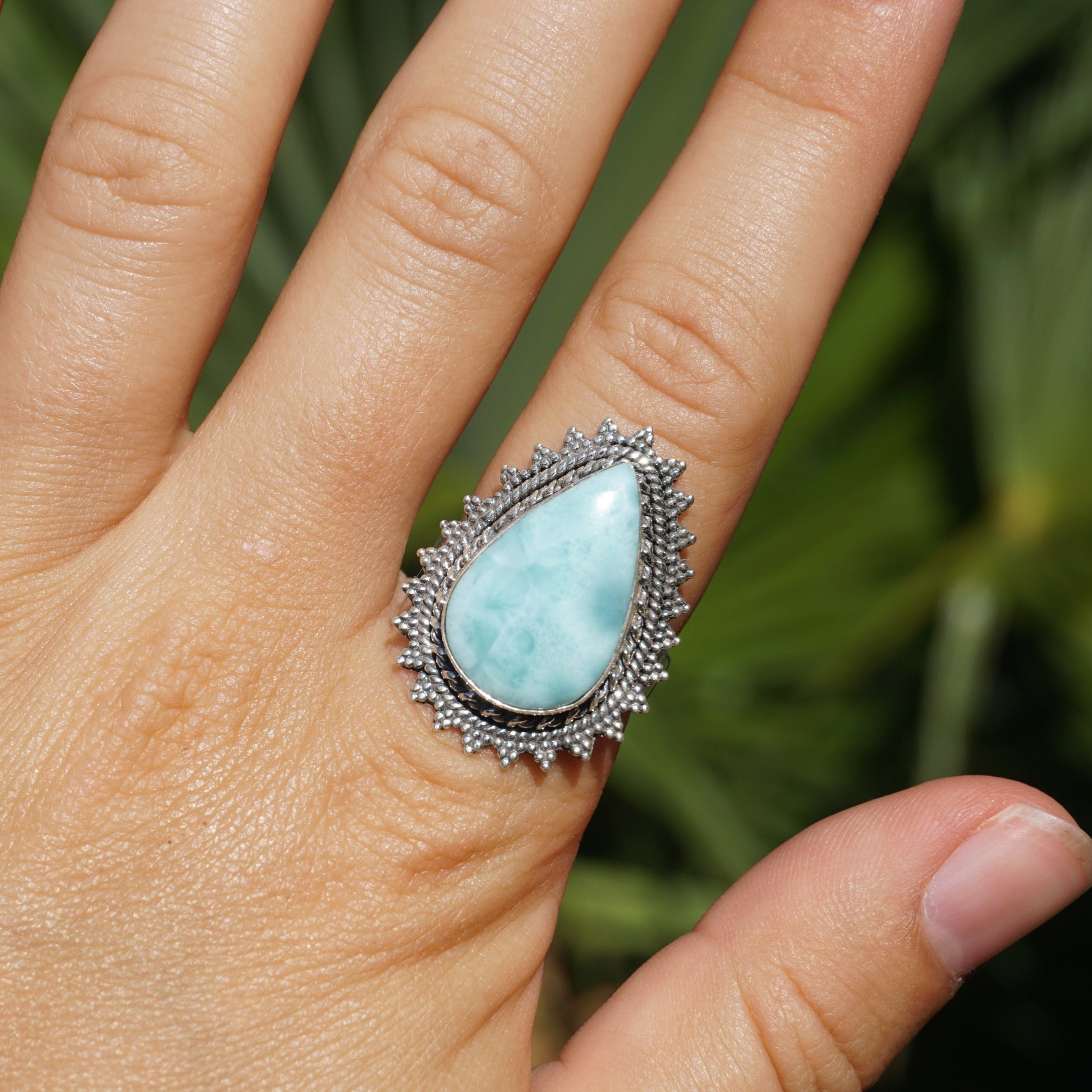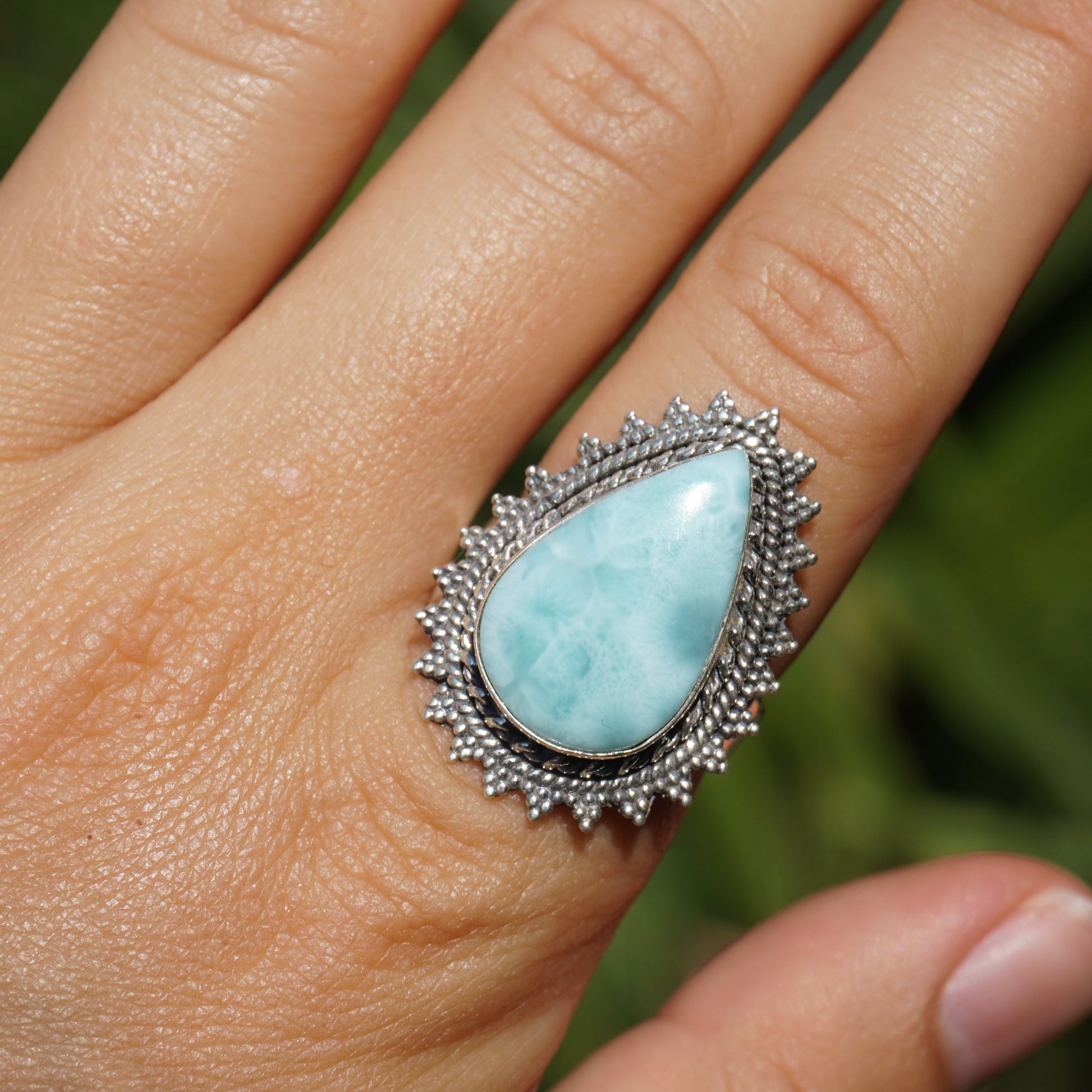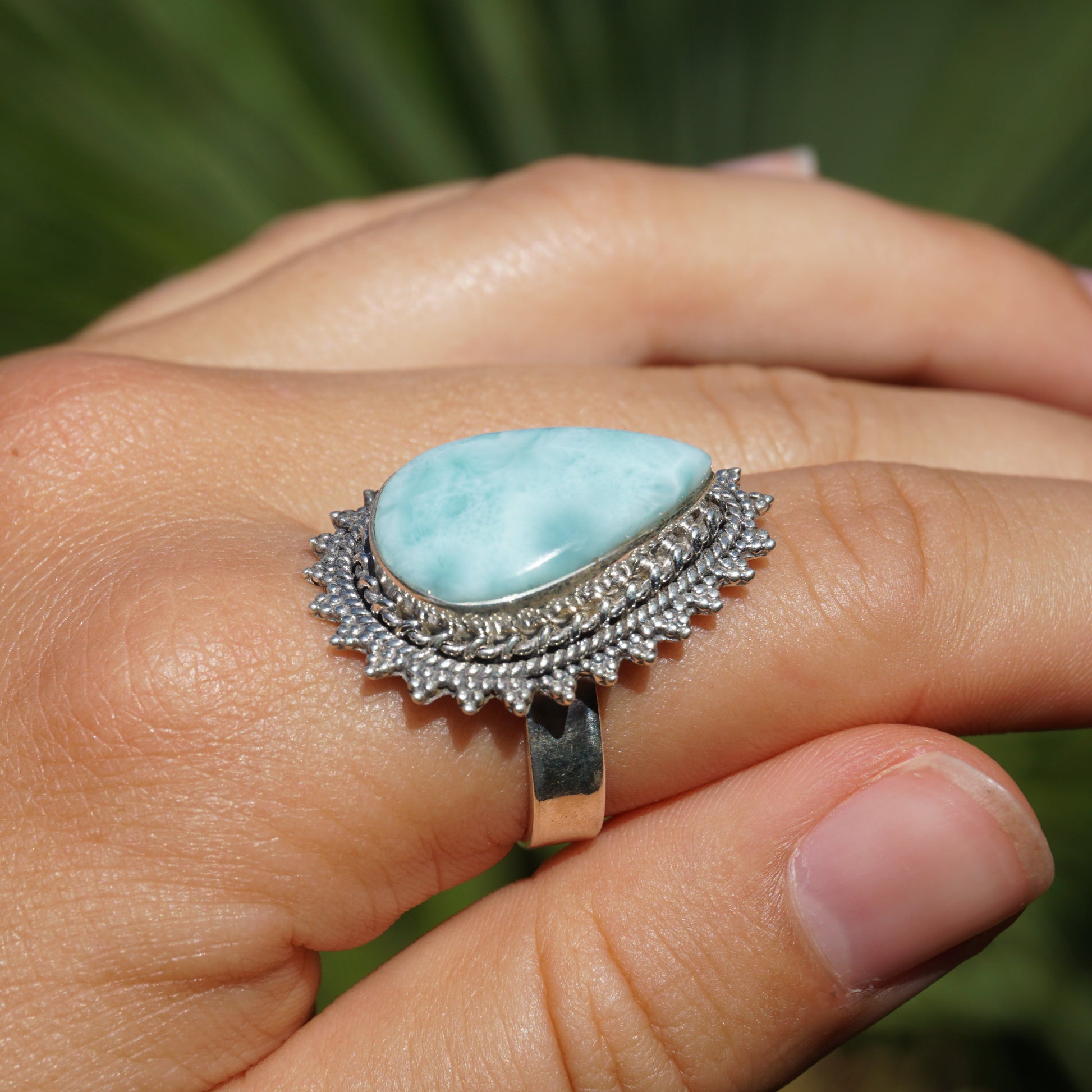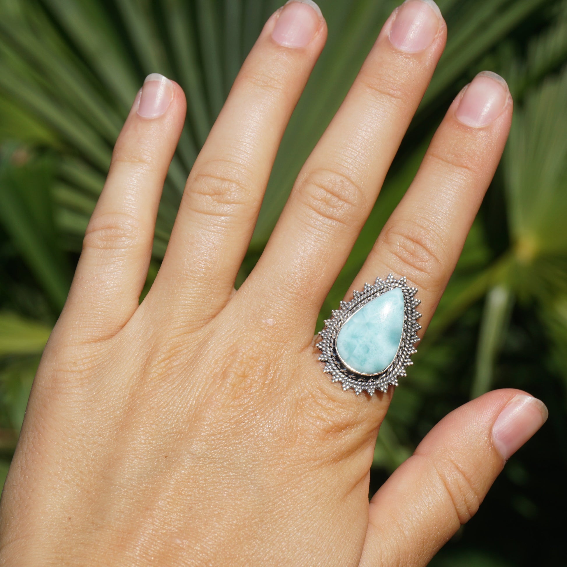 Handgefertigter Ring aus 925 Sterlingsilber mit Larimar.