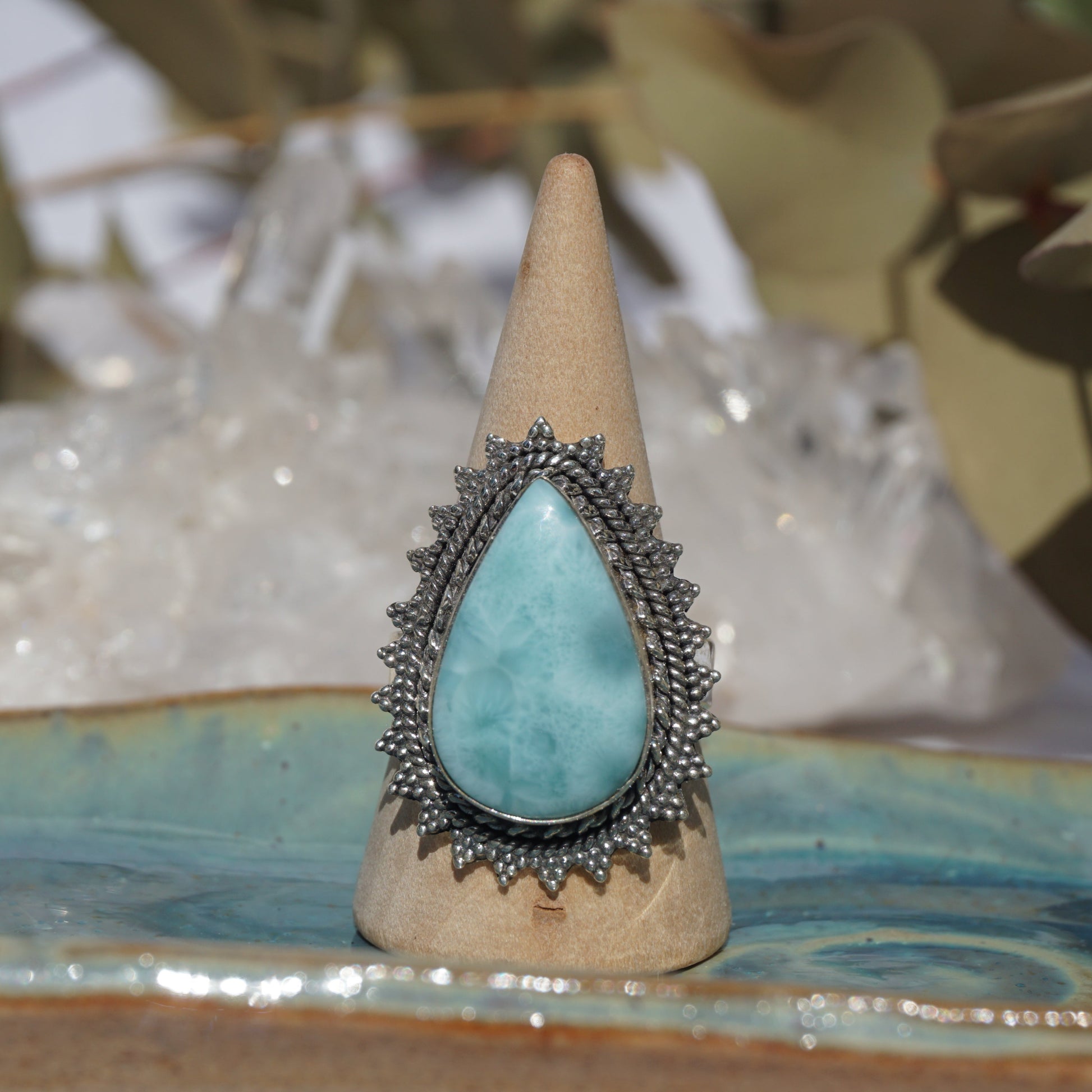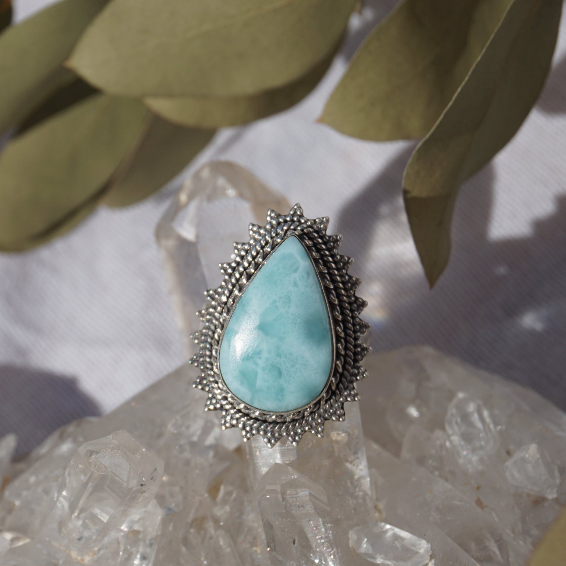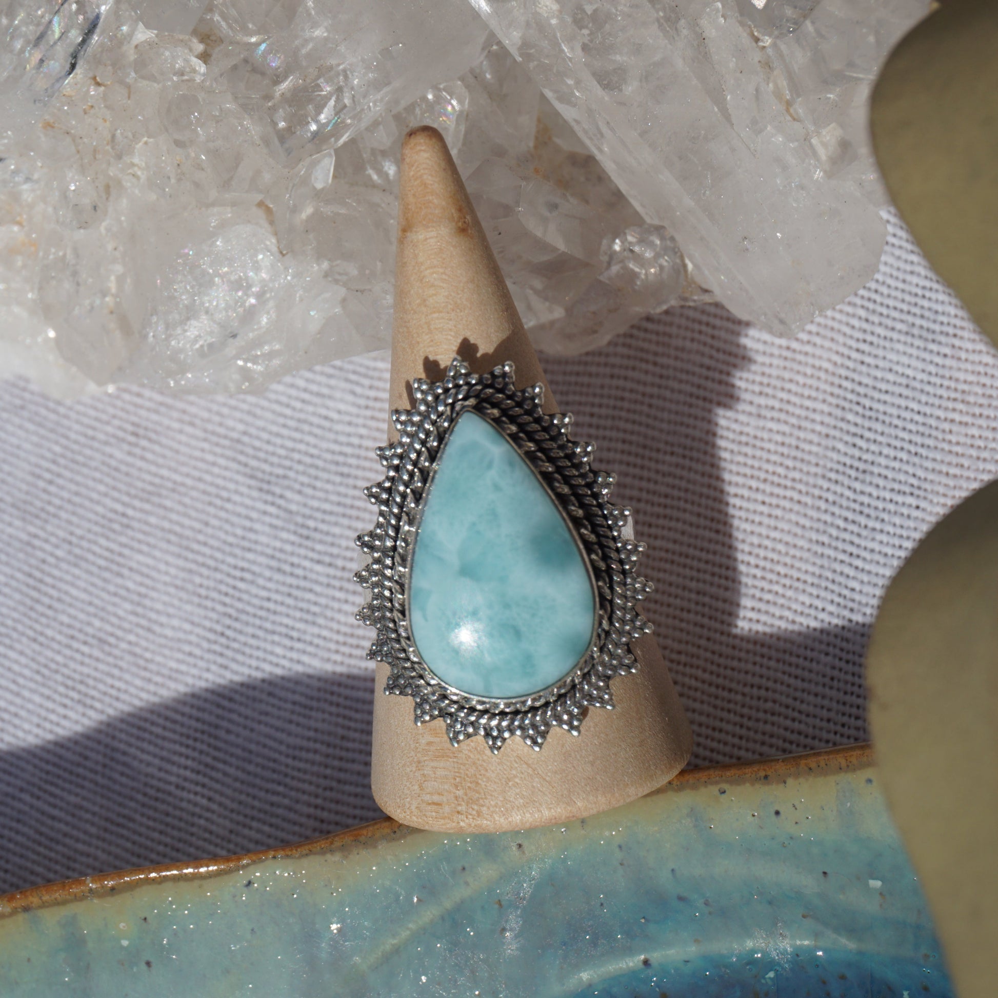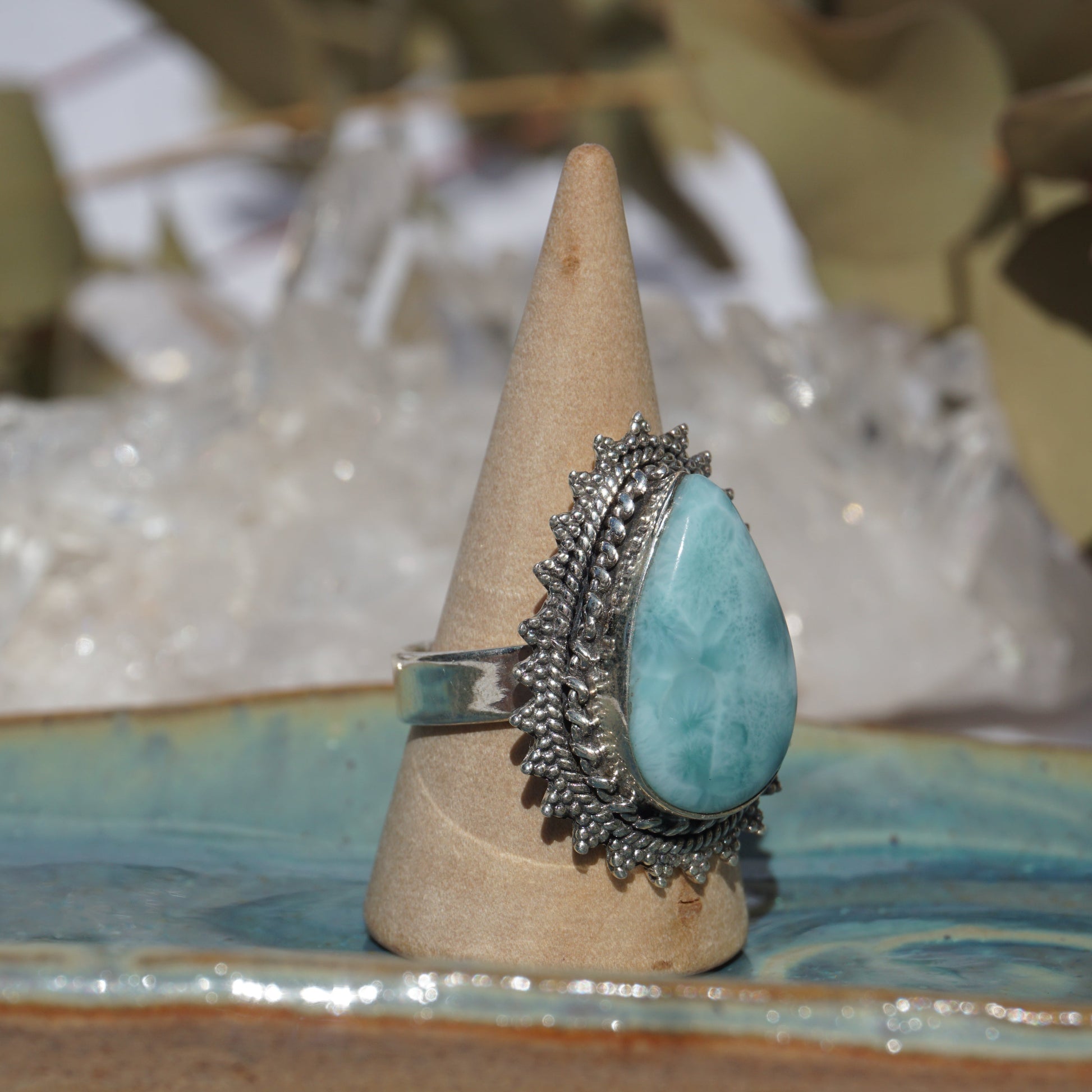 Handgefertigter Ring aus 925 Sterlingsilber mit Larimar.