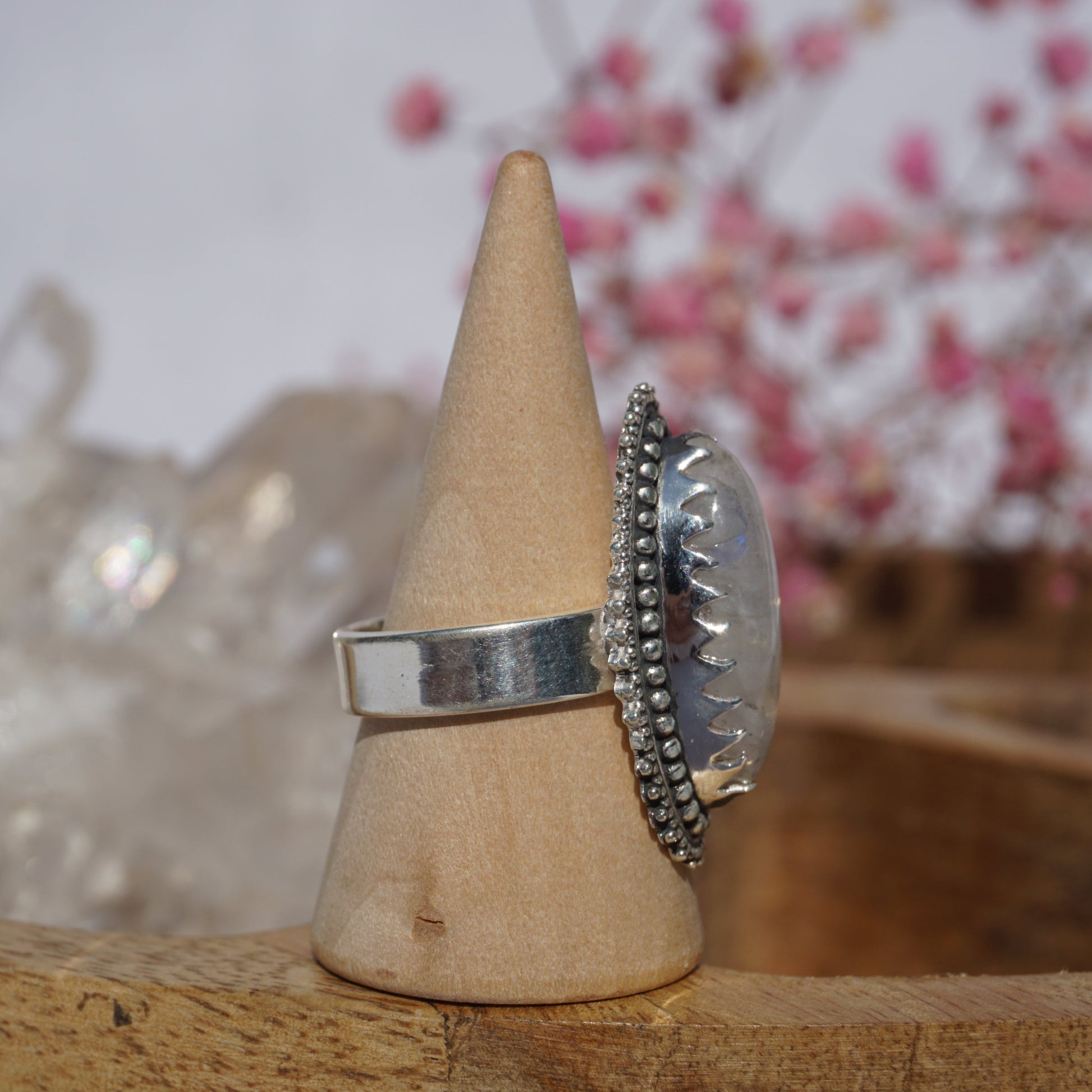 Handgefertigter Ring aus 925 Sterlingsilber mit Regenbogen Mondstein.