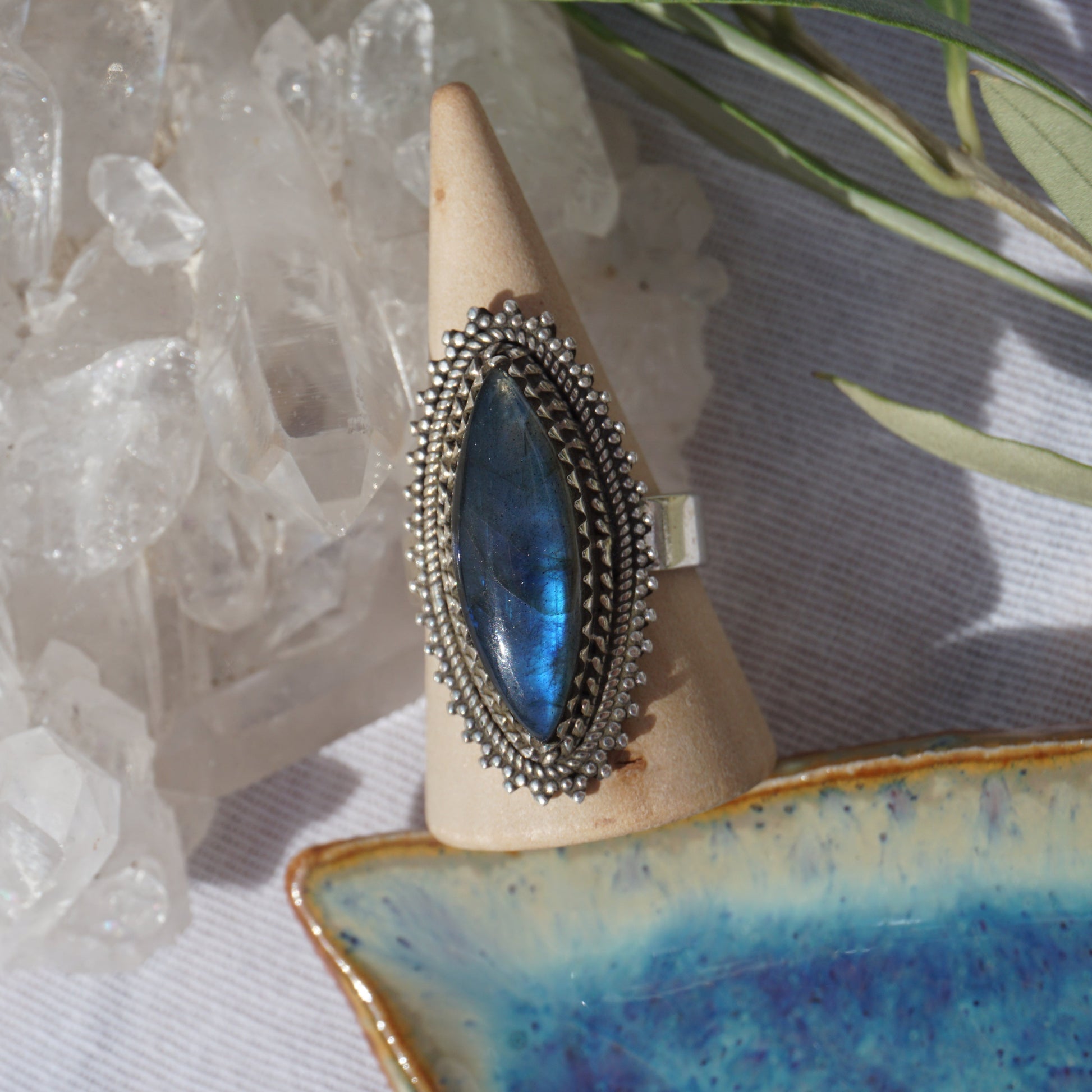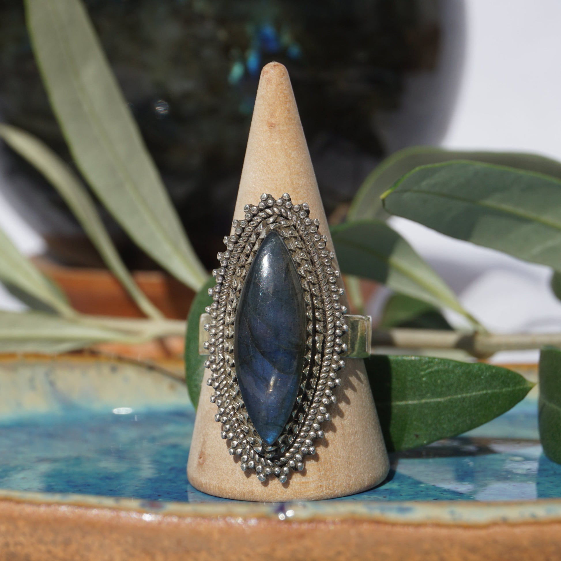 Handgefertigter Ring aus 925 Sterlingsilber mit Labradorit.