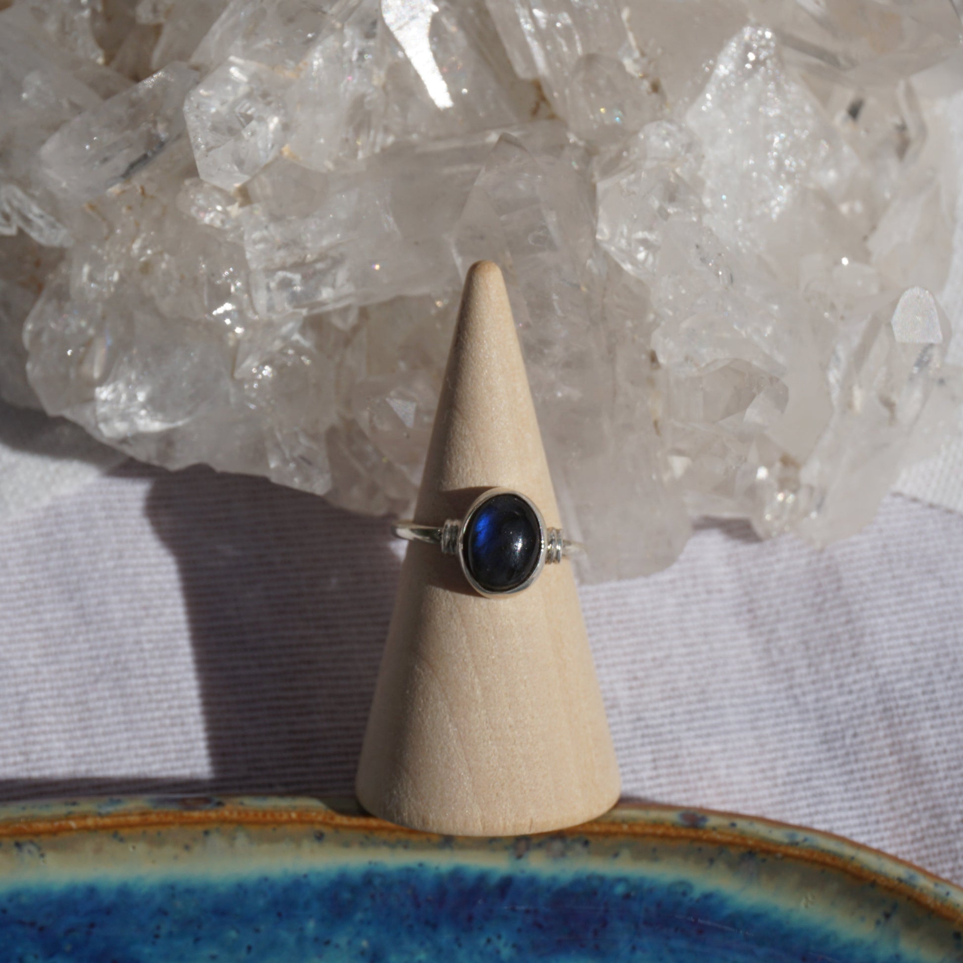 Handgefertigter Ring aus 925 Sterlingsilber mit Labradorit.