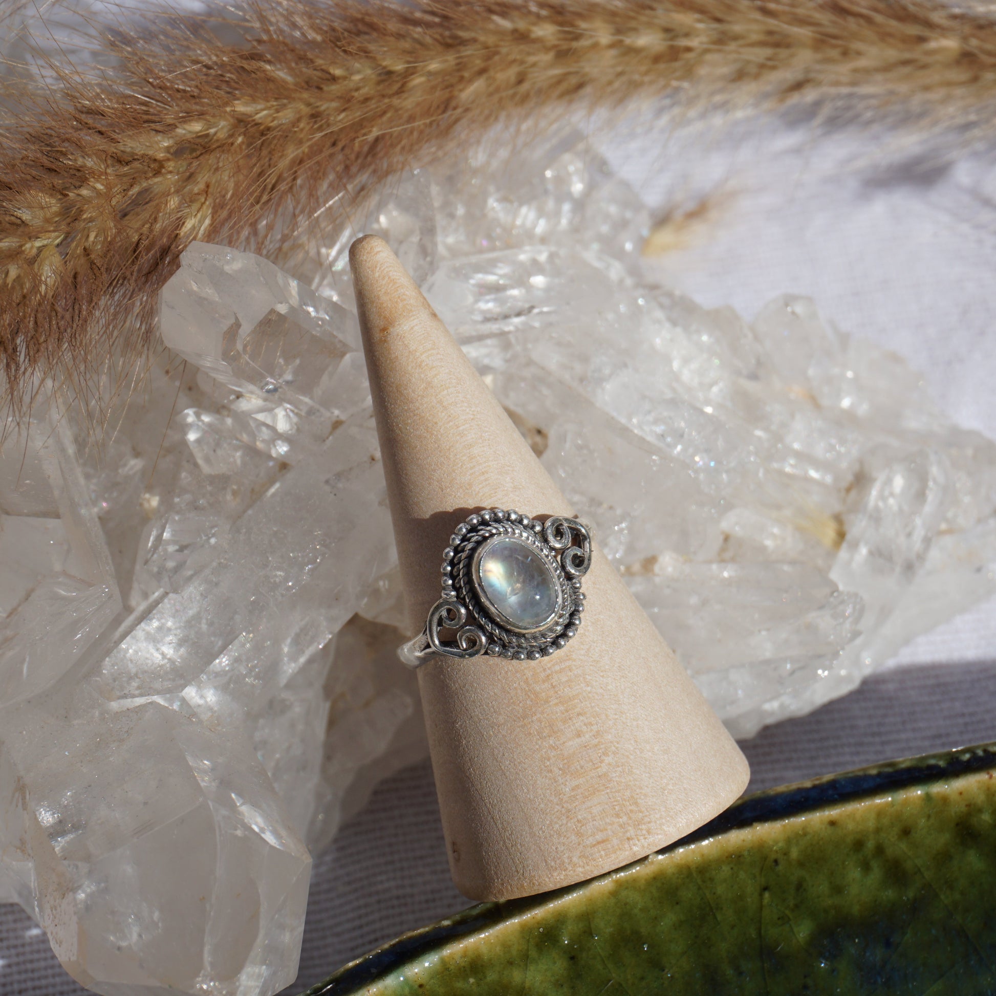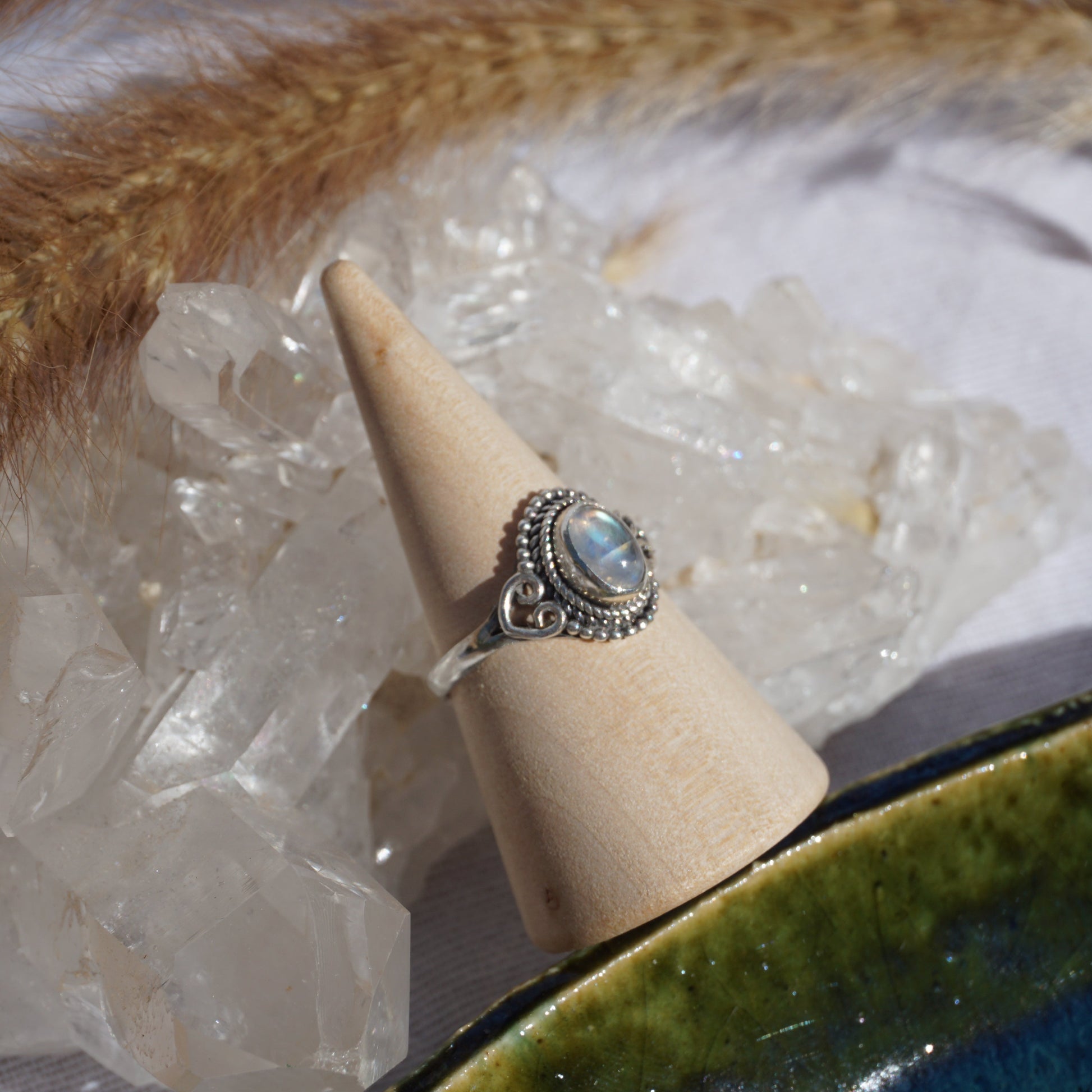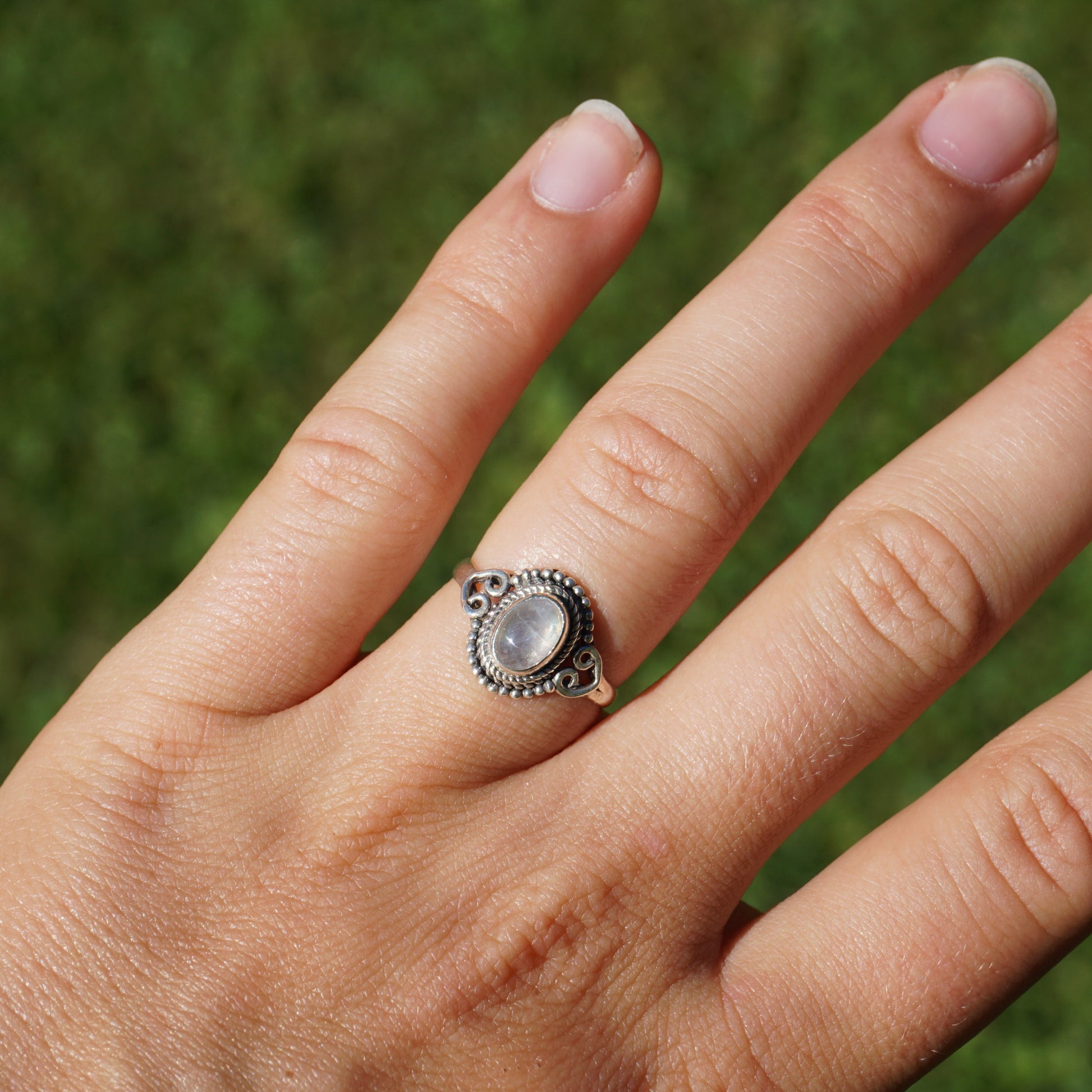 Handgefertigter Ring aus 925 Sterlingsilber mit Mondstein.