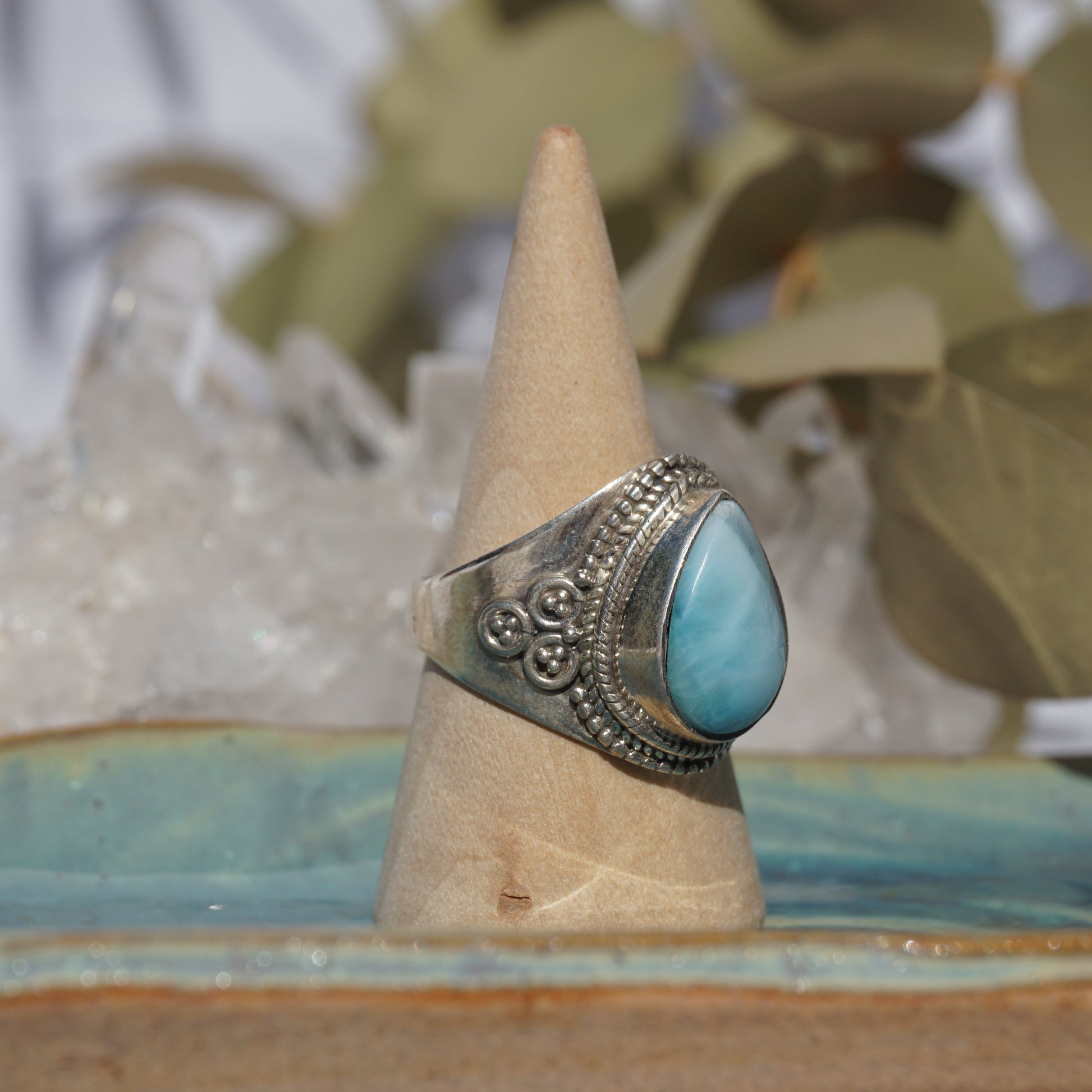 Handgefertigter Ring aus 925 Sterlingsilber mit Larimar.
