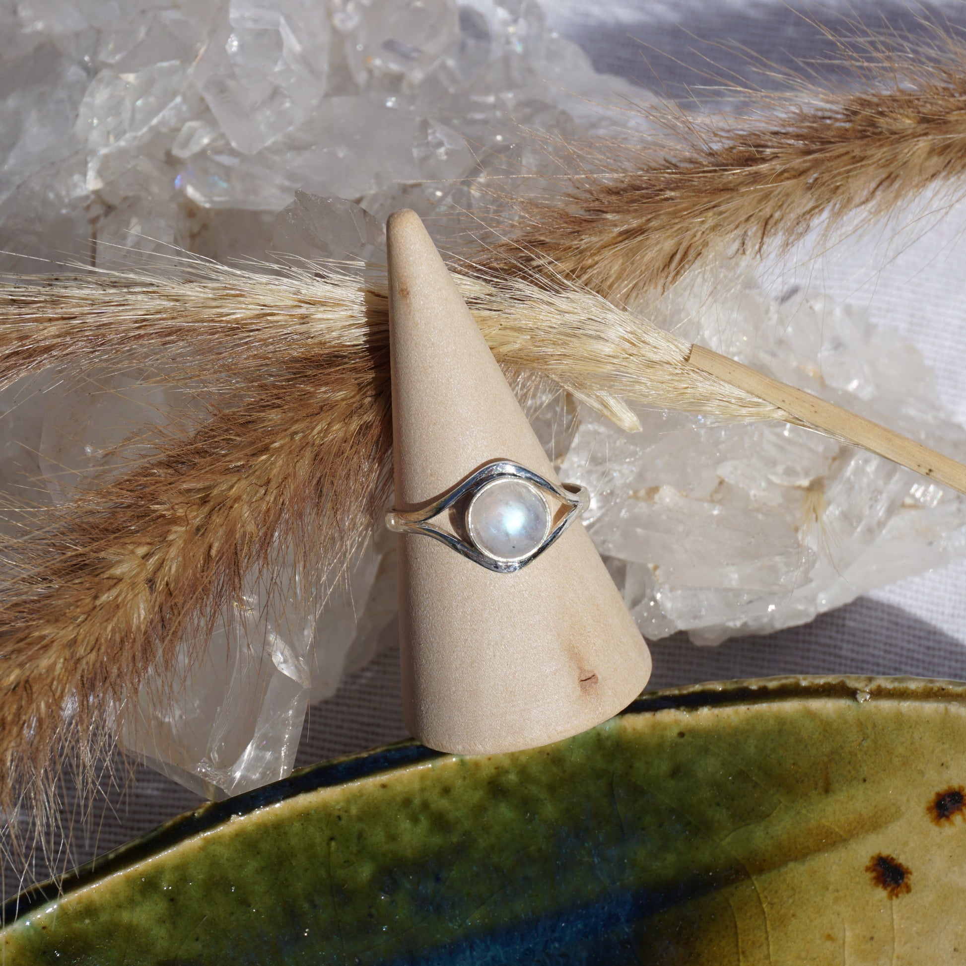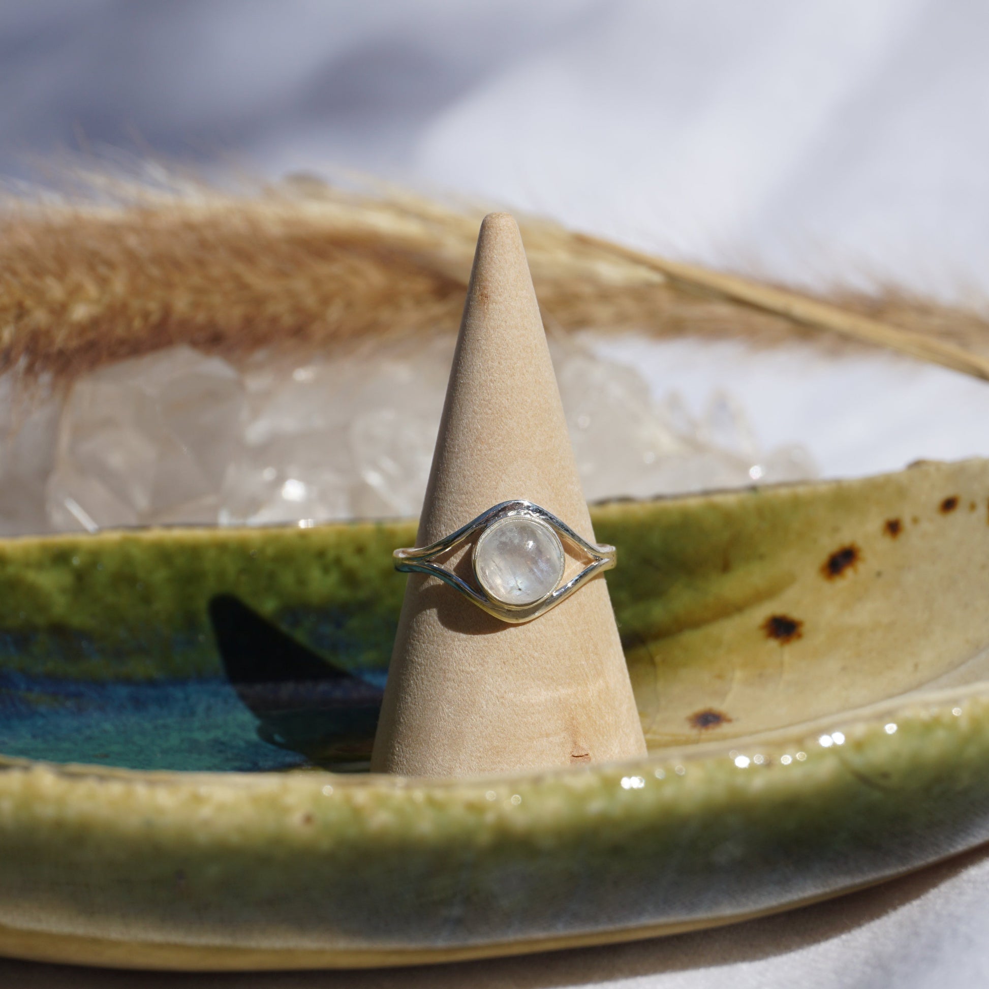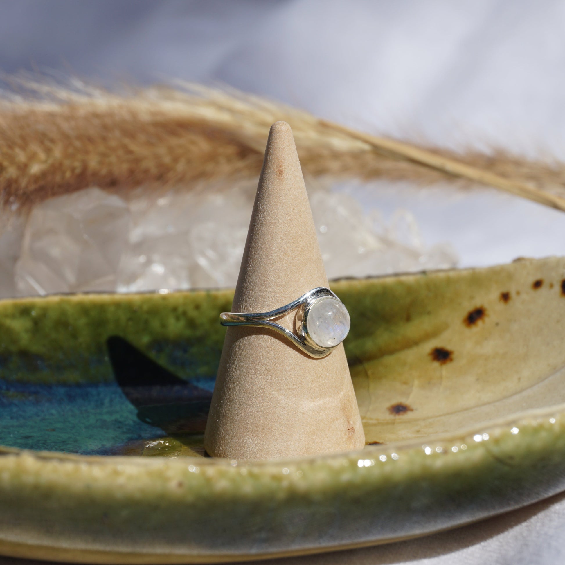 Handgefertigter Ring aus 925 Sterlingsilber mit Mondstein.