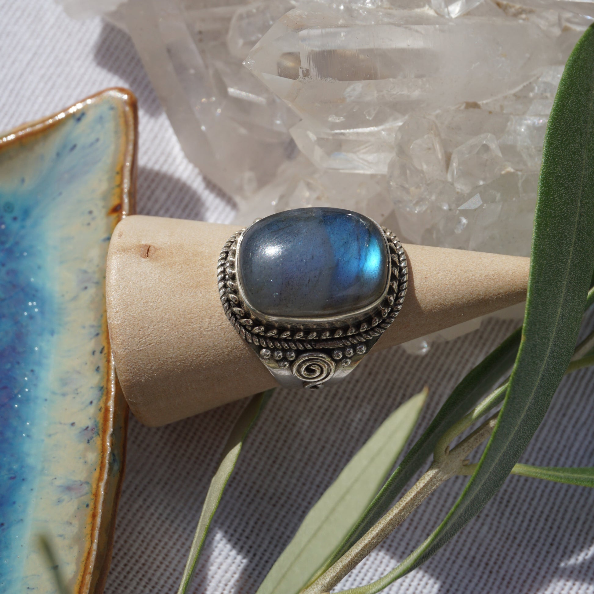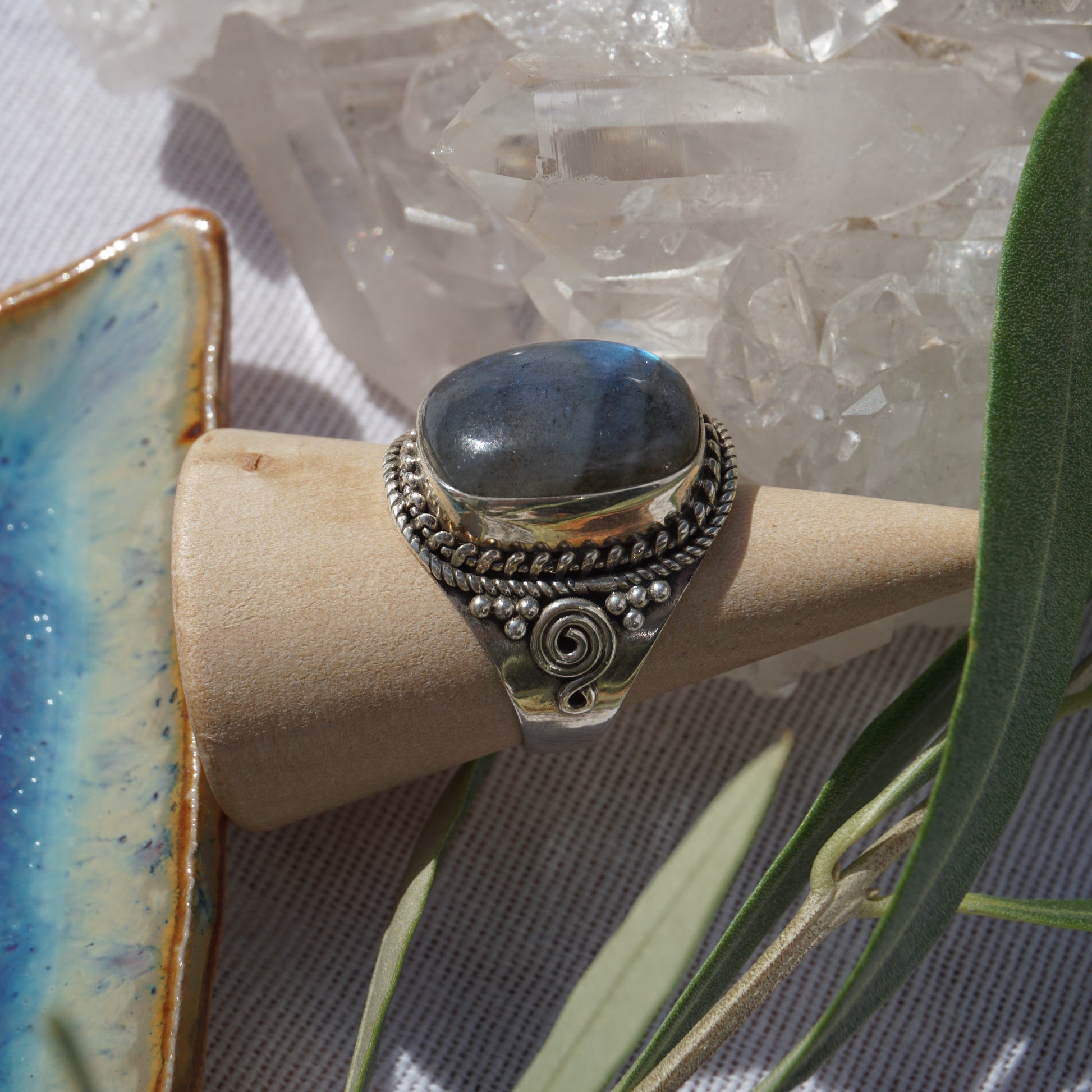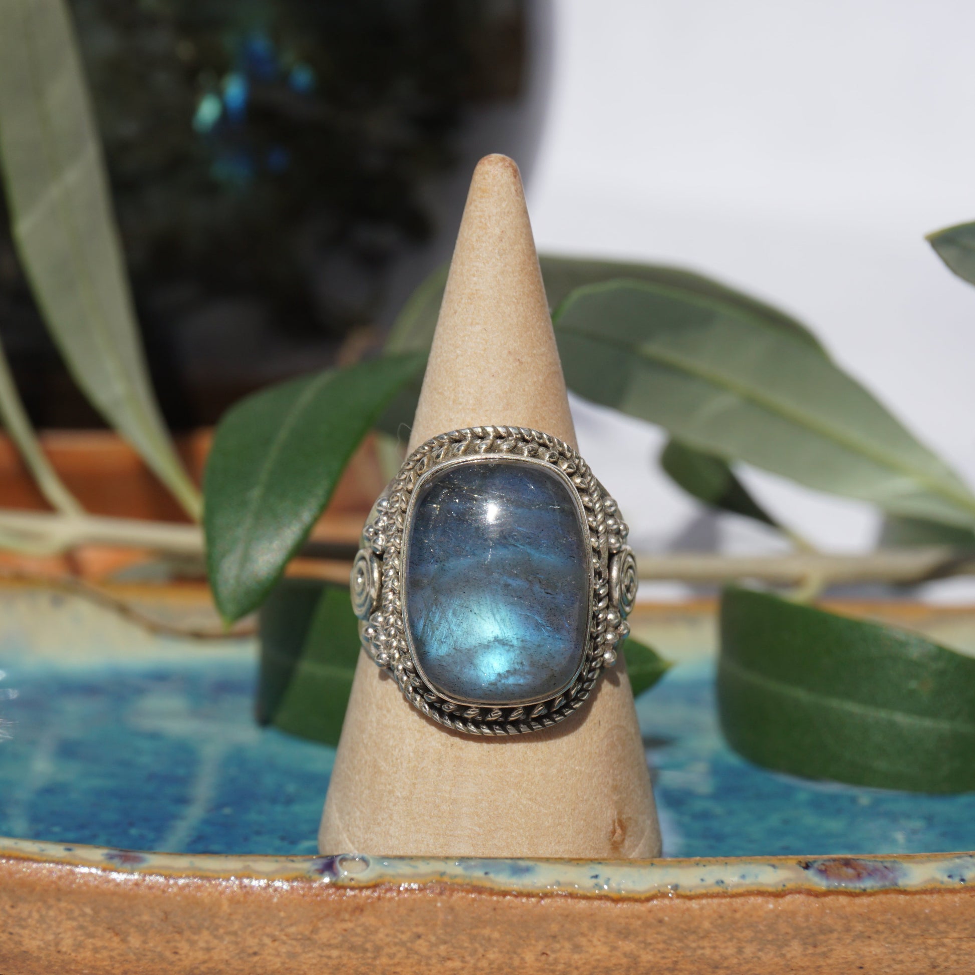 Handgefertigter Ring aus 925 Sterlingsilber mit Labradorit.